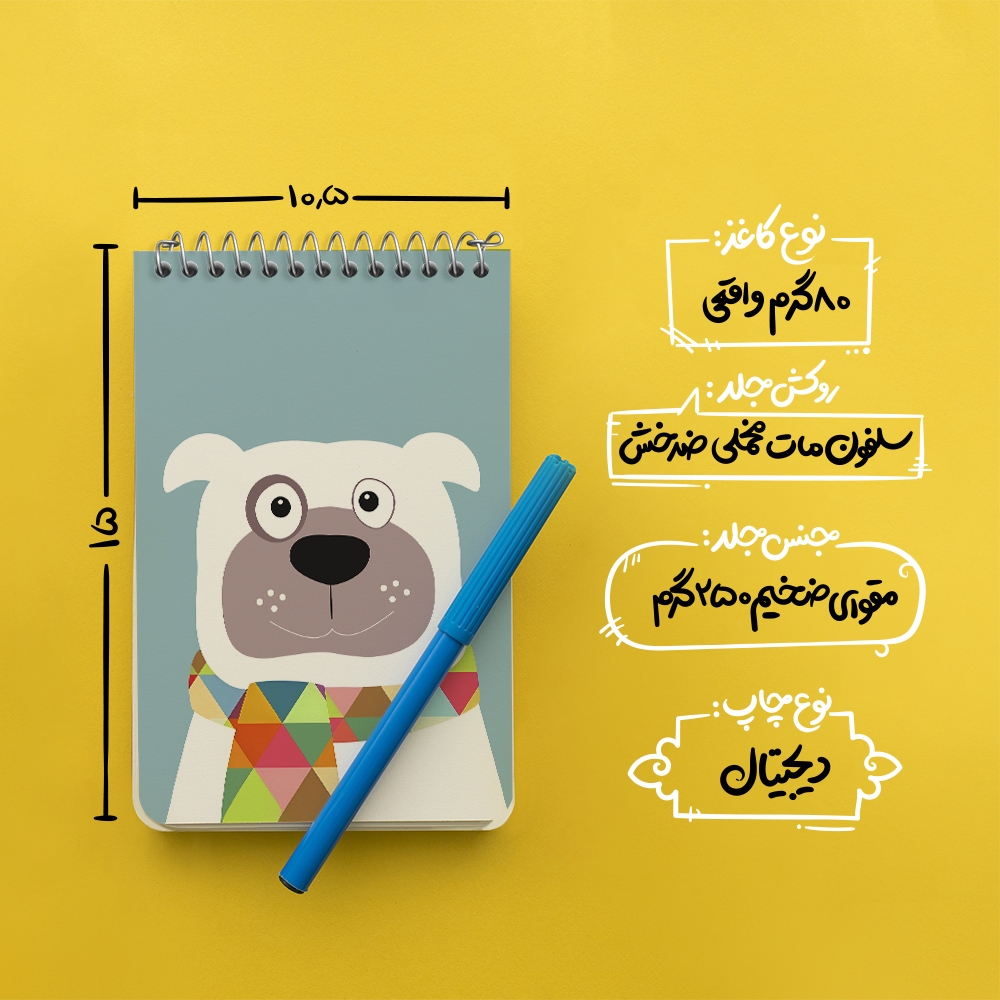 برند خندالو در زمینه تولید انواع دفاتر فانتزی و تحصیلی فعالیت میکند که به دلیل جذابیت ظاهری و طرح های متنوع طرفداران زیادی دارد. دفتر یادداشت خندالو طرح سگ بامزه محصولی مناسب برای همه عاشقان لوازم التحریر است و همچنین همه کسانی که بنا به موقعیت تحصیل یا شغلشان با دفتر و نوشت افزار زیاد سر و کار دارند. در تولید دفتر یادداشت خندالو طرح سگ بامزه از نوع صحافی فنر مارپیچ استفاده شده که در این نوع صحافی برگه‌ها به راحتی چرخیده و یا بیرون آورده می شوند.