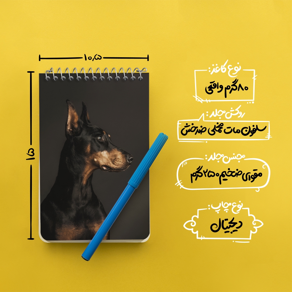 برند خندالو در زمینه تولید انواع دفاتر فانتزی و تحصیلی فعالیت میکند که به دلیل جذابیت ظاهری و طرح های متنوع طرفداران زیادی دارد. دفتر یادداشت خندالو طرح سگ دوبرمن (Dobermann) محصولی مناسب برای همه عاشقان لوازم التحریر است و همچنین همه کسانی که بنا به موقعیت تحصیل یا شغلشان با دفتر و نوشت افزار زیاد سر و کار دارند. در تولید دفتر یادداشت خندالو طرح سگ دوبرمن (Dobermann) از نوع صحافی فنر مارپیچ استفاده شده که در این نوع صحافی برگهها به راحتی چرخیده و یا بیرون آورده می شوند. دفتر های خندالو دارای جلد انعطاف پذیر از جنس مقوای گلاسه 250 گرم با روکش سلفون مات مخملی است که به شما امکان میدهد از دفتر خود بدون اینکه نگرانی از شکستن یا خراب شدن جلد را داشته باشید استفاده کنید و همچنین در این دفاتر از کاغذ 80 گرم با کیفیت استفاده شده که باعث میشود هنگام نوشتن به خوبی جوهر قلم بر روی صفحه نشسته و از خط خوردگیها جلوگیری کند. دفتر یادداشت خندالو با جنس و دوام مناسب، برگه های کاملاً سفید و خطوط طوسی دقیق را داراست که انسان را به نوشتن منظم و زیبا ترغیب میکند. طراحی کاملاً مناسب این دفاتر، به همراه کیفیت بالا، از آن یک محصول مورد علاقه و قابل اعتماد برای همه مقاطع تحصیلی میسازد. دفتر یادداشت خندالو طرح سگ دوبرمن (Dobermann) انتخابی هوشمندانه و مناسب برای افرادی است که به دنبال دفتری با کیفیت و کاربرد عالی هستند. این دفتر، همراه خوبی برای شما در تمام مراحل تحصیل و کار خواهد بود و تجربهای لذتبخش از نوشتن و آموختن را به شما هدیه میدهد.