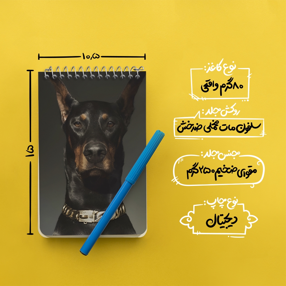 برند خندالو در زمینه تولید انواع دفاتر فانتزی و تحصیلی فعالیت میکند که به دلیل جذابیت ظاهری و طرح های متنوع طرفداران زیادی دارد. دفتر یادداشت خندالو طرح سگ دوبرمن (Dobermann) محصولی مناسب برای همه عاشقان لوازم التحریر است و همچنین همه کسانی که بنا به موقعیت تحصیل یا شغلشان با دفتر و نوشت افزار زیاد سر و کار دارند. در تولید دفتر یادداشت خندالو طرح سگ دوبرمن (Dobermann) از نوع صحافی فنر مارپیچ استفاده شده که در این نوع صحافی برگهها به راحتی چرخیده و یا بیرون آورده می شوند. دفتر های خندالو دارای جلد انعطاف پذیر از جنس مقوای گلاسه 250 گرم با روکش سلفون مات مخملی است که به شما امکان میدهد از دفتر خود بدون اینکه نگرانی از شکستن یا خراب شدن جلد را داشته باشید استفاده کنید و همچنین در این دفاتر از کاغذ 80 گرم با کیفیت استفاده شده که باعث میشود هنگام نوشتن به خوبی جوهر قلم بر روی صفحه نشسته و از خط خوردگیها جلوگیری کند. دفتر یادداشت خندالو با جنس و دوام مناسب، برگه های کاملاً سفید و خطوط طوسی دقیق را داراست که انسان را به نوشتن منظم و زیبا ترغیب میکند. طراحی کاملاً مناسب این دفاتر، به همراه کیفیت بالا، از آن یک محصول مورد علاقه و قابل اعتماد برای همه مقاطع تحصیلی میسازد. دفتر یادداشت خندالو طرح سگ دوبرمن (Dobermann) انتخابی هوشمندانه و مناسب برای افرادی است که به دنبال دفتری با کیفیت و کاربرد عالی هستند. این دفتر، همراه خوبی برای شما در تمام مراحل تحصیل و کار خواهد بود و تجربهای لذتبخش از نوشتن و آموختن را به شما هدیه میدهد.