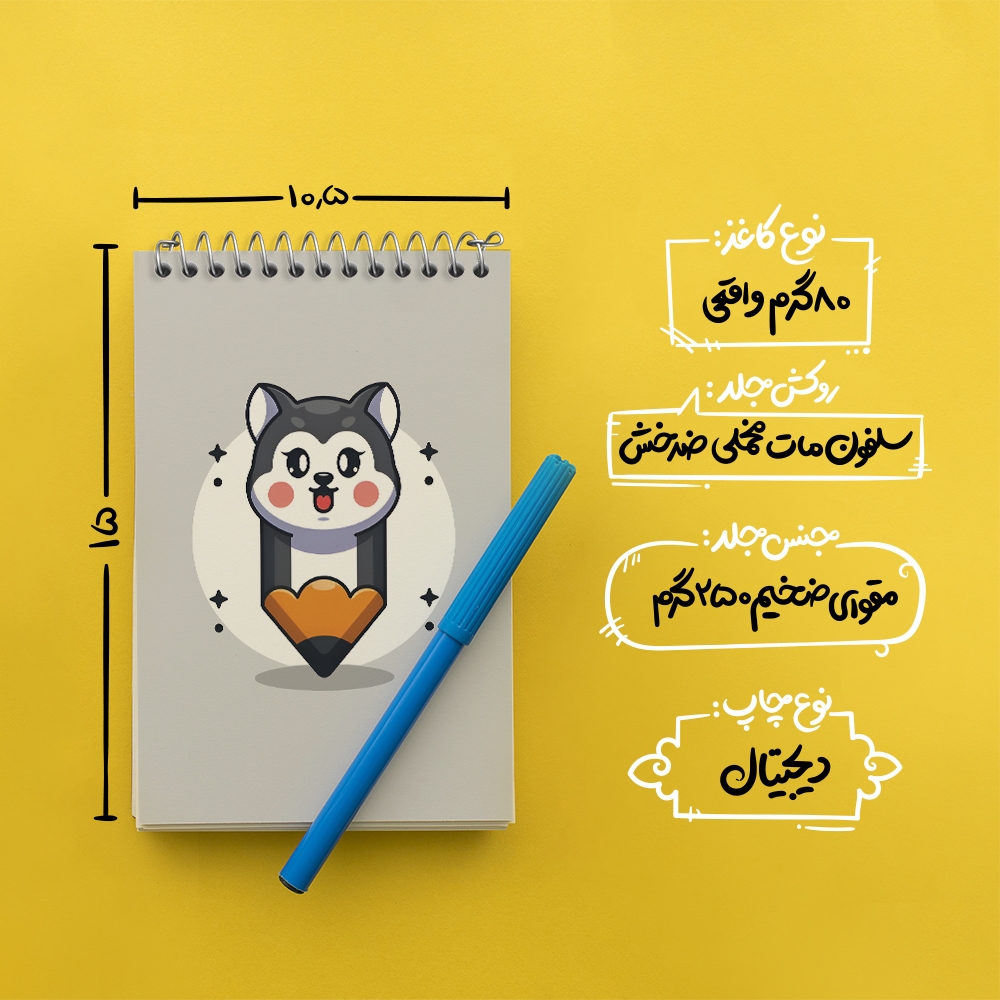برند خندالو در زمینه تولید انواع دفاتر فانتزی و تحصیلی فعالیت میکند که به دلیل جذابیت ظاهری و طرح های متنوع طرفداران زیادی دارد. دفتر یادداشت خندالو طرح سگ مدادی محصولی مناسب برای همه عاشقان لوازم التحریر است و همچنین همه کسانی که بنا به موقعیت تحصیل یا شغلشان با دفتر و نوشت افزار زیاد سر و کار دارند. در تولید دفتر یادداشت خندالو طرح سگ مدادی از نوع صحافی فنر مارپیچ استفاده شده که در این نوع صحافی برگهها به راحتی چرخیده و یا بیرون آورده می شوند. دفتر های خندالو دارای جلد انعطاف پذیر از جنس مقوای گلاسه 250 گرم با روکش سلفون مات مخملی است که به شما امکان میدهد از دفتر خود بدون اینکه نگرانی از شکستن یا خراب شدن جلد را داشته باشید استفاده کنید و همچنین در این دفاتر از کاغذ 80 گرم با کیفیت استفاده شده که باعث میشود هنگام نوشتن به خوبی جوهر قلم بر روی صفحه نشسته و از خط خوردگیها جلوگیری کند. دفتر یادداشت خندالو با جنس و دوام مناسب، برگه های کاملاً سفید و خطوط طوسی دقیق را داراست که انسان را به نوشتن منظم و زیبا ترغیب میکند. طراحی کاملاً مناسب این دفاتر، به همراه کیفیت بالا، از آن یک محصول مورد علاقه و قابل اعتماد برای همه مقاطع تحصیلی میسازد. دفتر یادداشت خندالو طرح سگ مدادی انتخابی هوشمندانه و مناسب برای افرادی است که به دنبال دفتری با کیفیت و کاربرد عالی هستند. این دفتر، همراه خوبی برای شما در تمام مراحل تحصیل و کار خواهد بود و تجربهای لذتبخش از نوشتن و آموختن را به شما هدیه میدهد.