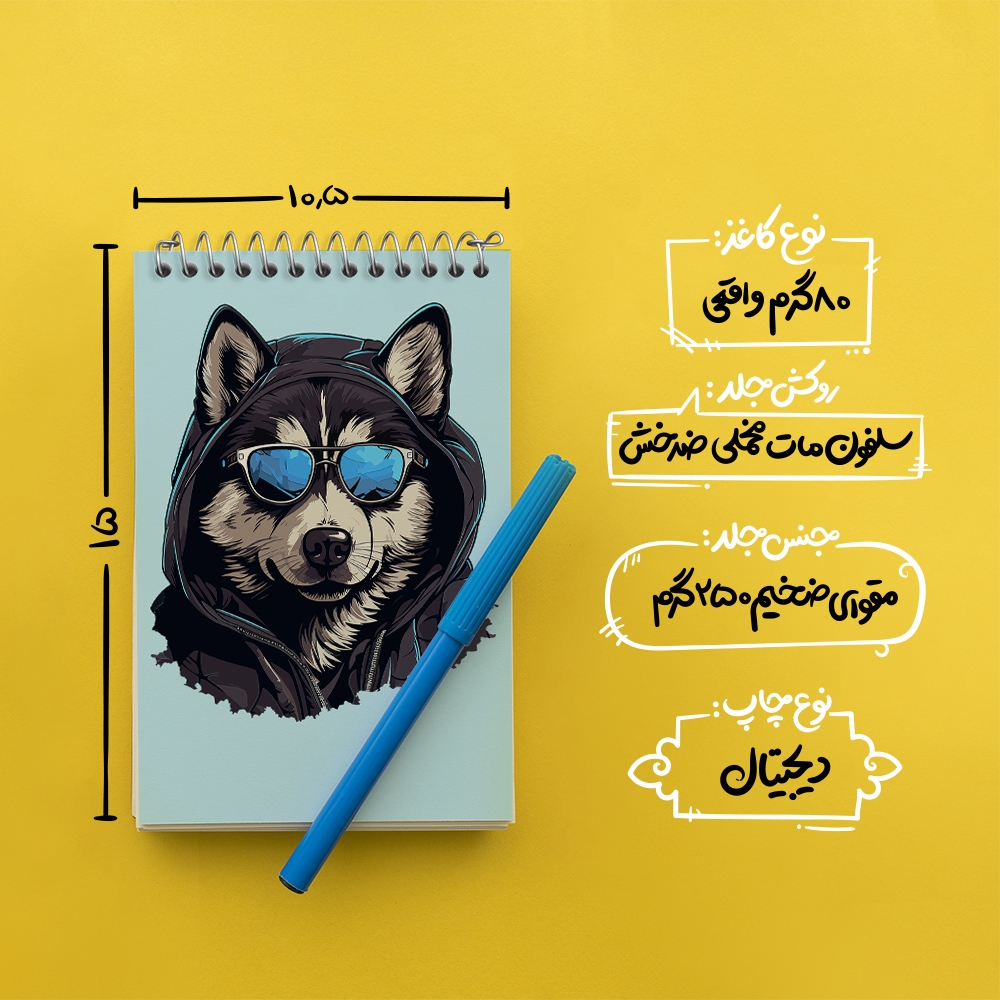 برند خندالو در زمینه تولید انواع دفاتر فانتزی و تحصیلی فعالیت میکند که به دلیل جذابیت ظاهری و طرح های متنوع طرفداران زیادی دارد. دفتر یادداشت خندالو طرح سگ هاسکی محصولی مناسب برای همه عاشقان لوازم التحریر است و همچنین همه کسانی که بنا به موقعیت تحصیل یا شغلشان با دفتر و نوشت افزار زیاد سر و کار دارند. در تولید دفتر یادداشت خندالو طرح سگ هاسکی از نوع صحافی فنر مارپیچ استفاده شده که در این نوع صحافی برگه‌ها به راحتی چرخیده و یا بیرون آورده می شوند.