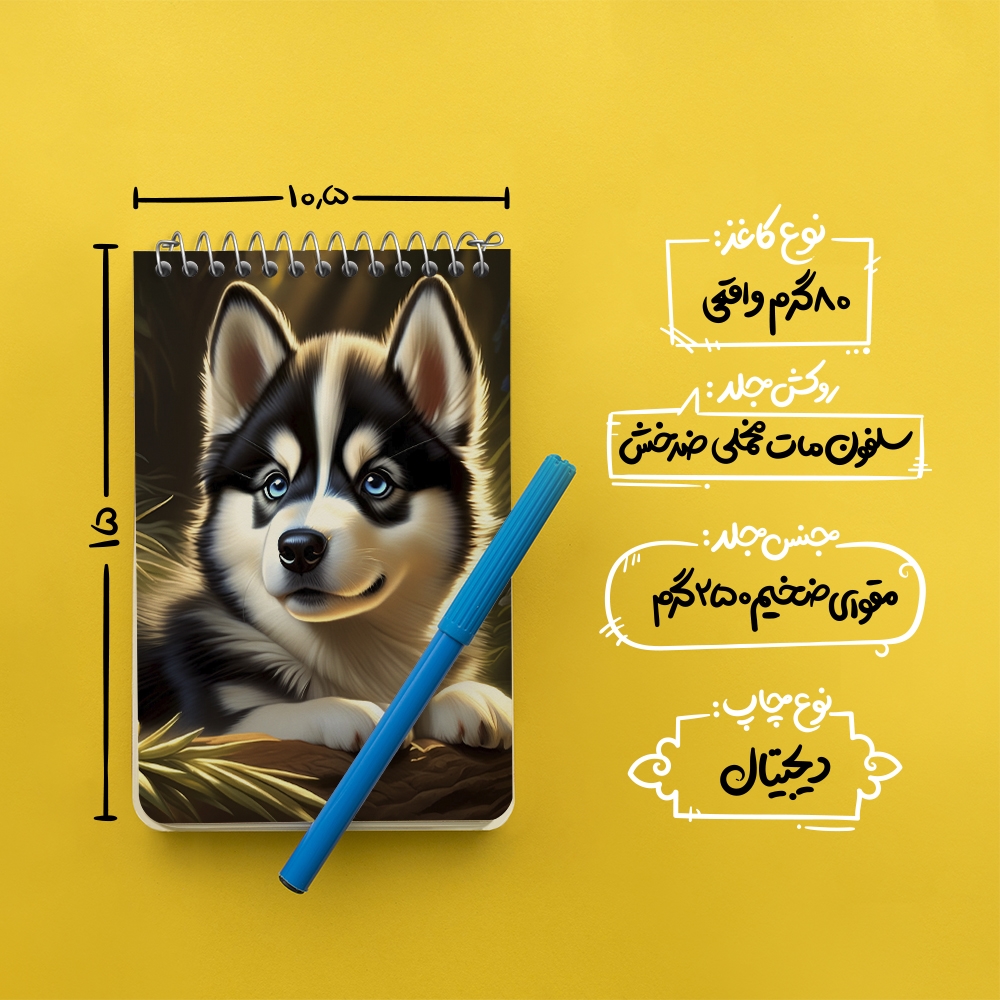 برند خندالو در زمینه تولید انواع دفاتر فانتزی و تحصیلی فعالیت میکند که به دلیل جذابیت ظاهری و طرح های متنوع طرفداران زیادی دارد. دفتر یادداشت خندالو طرح سگ هاسکی محصولی مناسب برای همه عاشقان لوازم التحریر است و همچنین همه کسانی که بنا به موقعیت تحصیل یا شغلشان با دفتر و نوشت افزار زیاد سر و کار دارند. در تولید دفتر یادداشت خندالو طرح سگ هاسکی از نوع صحافی فنر مارپیچ استفاده شده که در این نوع صحافی برگه‌ها به راحتی چرخیده و یا بیرون آورده می شوند.