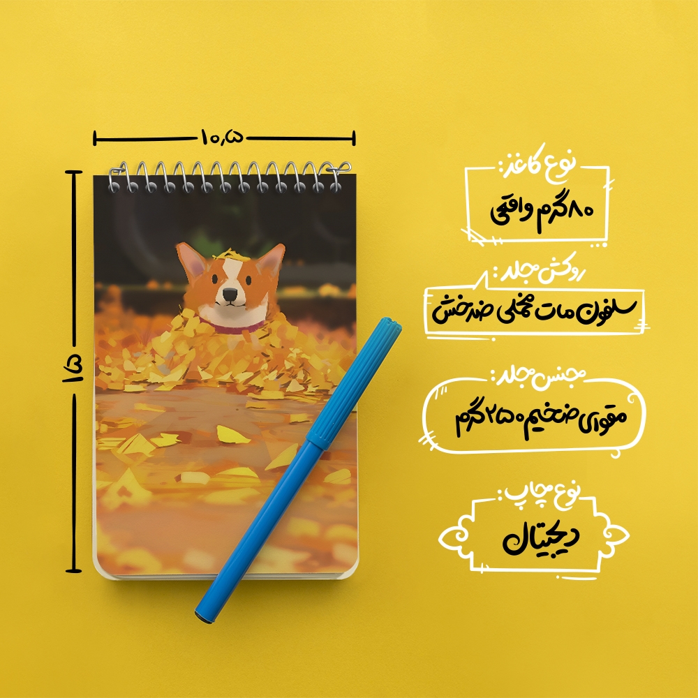 برند خندالو در زمینه تولید انواع دفاتر فانتزی و تحصیلی فعالیت میکند که به دلیل جذابیت ظاهری و طرح های متنوع طرفداران زیادی دارد. دفتر یادداشت خندالو طرح سگ و پاییز محصولی مناسب برای همه عاشقان لوازم التحریر است و همچنین همه کسانی که بنا به موقعیت تحصیل یا شغلشان با دفتر و نوشت افزار زیاد سر و کار دارند. در تولید دفتر یادداشت خندالو طرح سگ و پاییز از نوع صحافی فنر مارپیچ استفاده شده که در این نوع صحافی برگه‌ها به راحتی چرخیده و یا بیرون آورده می شوند.