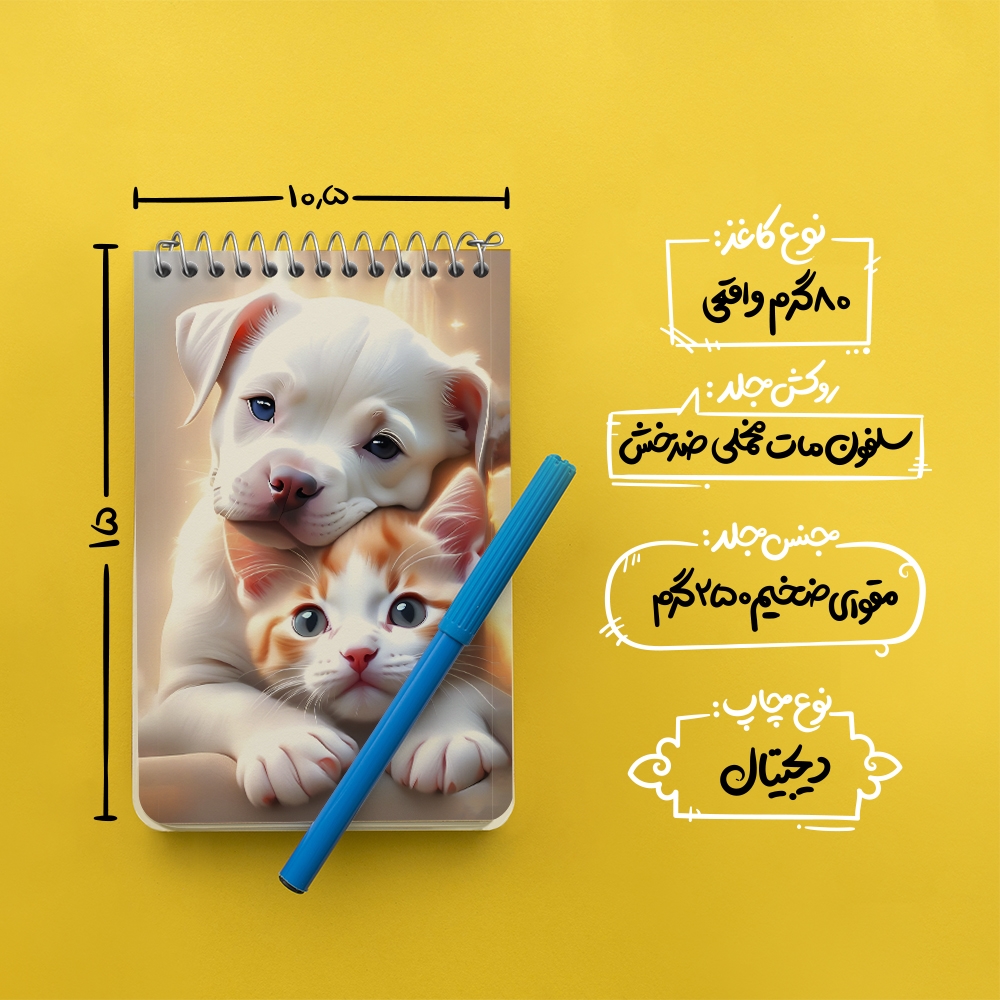 برند خندالو در زمینه تولید انواع دفاتر فانتزی و تحصیلی فعالیت میکند که به دلیل جذابیت ظاهری و طرح های متنوع طرفداران زیادی دارد. دفتر یادداشت خندالو طرح سگ و گربه کیوت محصولی مناسب برای همه عاشقان لوازم التحریر است و همچنین همه کسانی که بنا به موقعیت تحصیل یا شغلشان با دفتر و نوشت افزار زیاد سر و کار دارند. در تولید دفتر یادداشت خندالو طرح سگ و گربه کیوت از نوع صحافی فنر مارپیچ استفاده شده که در این نوع صحافی برگهها به راحتی چرخیده و یا بیرون آورده می شوند. دفتر های خندالو دارای جلد انعطاف پذیر از جنس مقوای گلاسه 250 گرم با روکش سلفون مات مخملی است که به شما امکان میدهد از دفتر خود بدون اینکه نگرانی از شکستن یا خراب شدن جلد را داشته باشید استفاده کنید و همچنین در این دفاتر از کاغذ 80 گرم با کیفیت استفاده شده که باعث میشود هنگام نوشتن به خوبی جوهر قلم بر روی صفحه نشسته و از خط خوردگیها جلوگیری کند. دفتر یادداشت خندالو با جنس و دوام مناسب، برگه های کاملاً سفید و خطوط طوسی دقیق را داراست که انسان را به نوشتن منظم و زیبا ترغیب میکند. طراحی کاملاً مناسب این دفاتر، به همراه کیفیت بالا، از آن یک محصول مورد علاقه و قابل اعتماد برای همه مقاطع تحصیلی میسازد. دفتر یادداشت خندالو طرح سگ و گربه کیوت انتخابی هوشمندانه و مناسب برای افرادی است که به دنبال دفتری با کیفیت و کاربرد عالی هستند. این دفتر، همراه خوبی برای شما در تمام مراحل تحصیل و کار خواهد بود و تجربهای لذتبخش از نوشتن و آموختن را به شما هدیه میدهد.