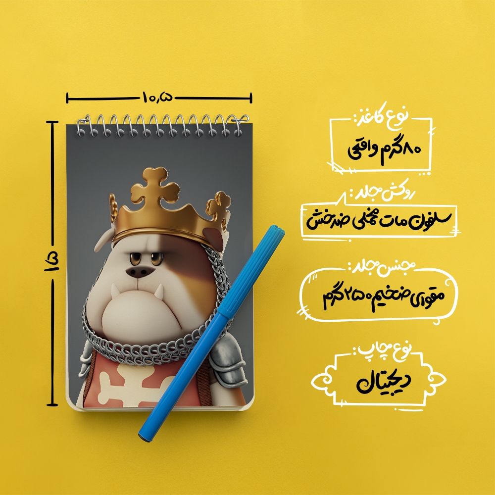 برند خندالو در زمینه تولید انواع دفاتر فانتزی و تحصیلی فعالیت میکند که به دلیل جذابیت ظاهری و طرح های متنوع طرفداران زیادی دارد. دفتر یادداشت خندالو طرح سگ پادشاه محصولی مناسب برای همه عاشقان لوازم التحریر است و همچنین همه کسانی که بنا به موقعیت تحصیل یا شغلشان با دفتر و نوشت افزار زیاد سر و کار دارند. در تولید دفتر یادداشت خندالو طرح سگ پادشاه از نوع صحافی فنر مارپیچ استفاده شده که در این نوع صحافی برگهها به راحتی چرخیده و یا بیرون آورده می شوند. دفتر های خندالو دارای جلد انعطاف پذیر از جنس مقوای گلاسه 250 گرم با روکش سلفون مات مخملی است که به شما امکان میدهد از دفتر خود بدون اینکه نگرانی از شکستن یا خراب شدن جلد را داشته باشید استفاده کنید و همچنین در این دفاتر از کاغذ 80 گرم با کیفیت استفاده شده که باعث میشود هنگام نوشتن به خوبی جوهر قلم بر روی صفحه نشسته و از خط خوردگیها جلوگیری کند. دفتر یادداشت خندالو با جنس و دوام مناسب، برگه های کاملاً سفید و خطوط طوسی دقیق را داراست که انسان را به نوشتن منظم و زیبا ترغیب میکند. طراحی کاملاً مناسب این دفاتر، به همراه کیفیت بالا، از آن یک محصول مورد علاقه و قابل اعتماد برای همه مقاطع تحصیلی میسازد. دفتر یادداشت خندالو طرح سگ پادشاه انتخابی هوشمندانه و مناسب برای افرادی است که به دنبال دفتری با کیفیت و کاربرد عالی هستند. این دفتر، همراه خوبی برای شما در تمام مراحل تحصیل و کار خواهد بود و تجربهای لذتبخش از نوشتن و آموختن را به شما هدیه میدهد.
