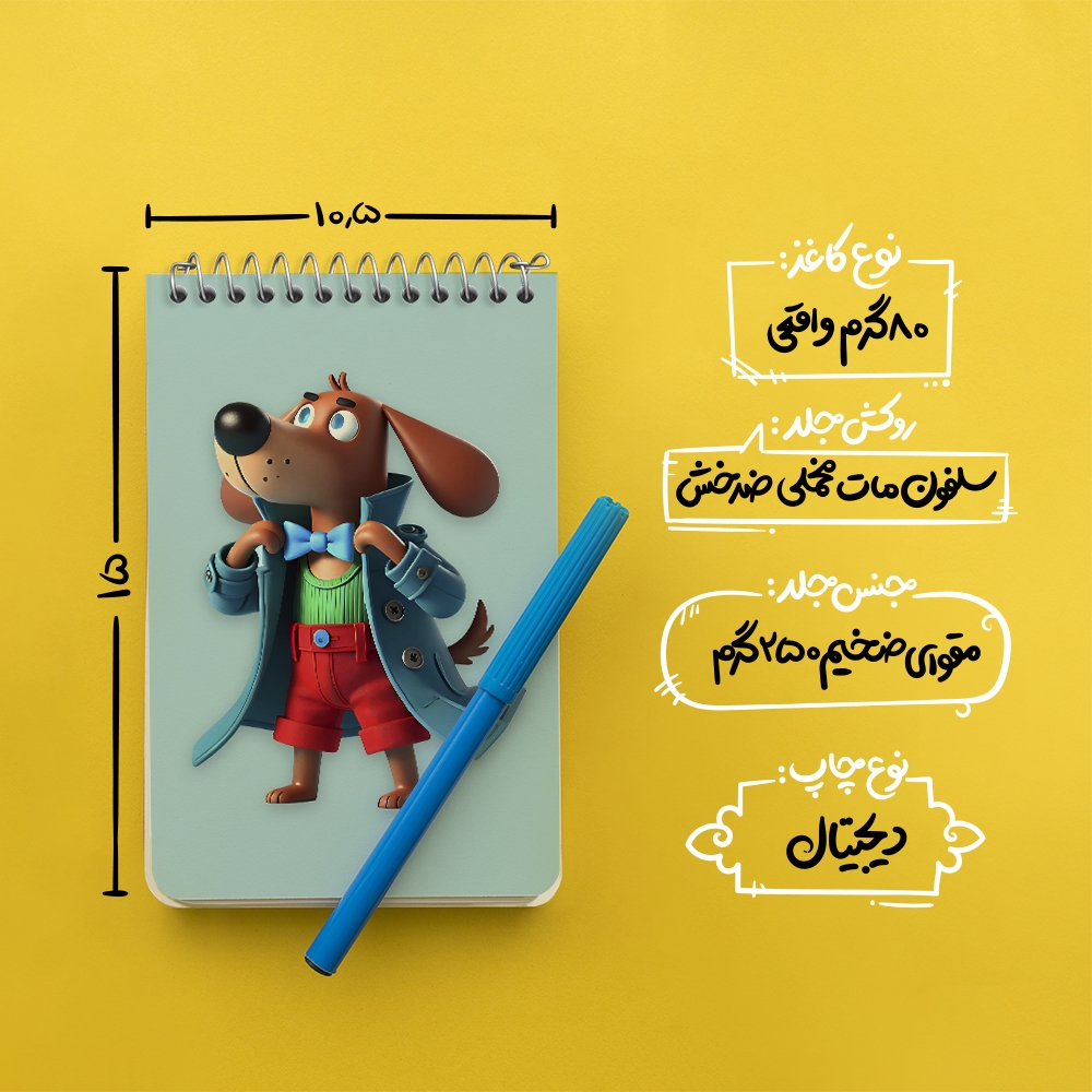 برند خندالو در زمینه تولید انواع دفاتر فانتزی و تحصیلی فعالیت میکند که به دلیل جذابیت ظاهری و طرح های متنوع طرفداران زیادی دارد. دفتر یادداشت خندالو طرح سگ کارآگاه محصولی مناسب برای همه عاشقان لوازم التحریر است و همچنین همه کسانی که بنا به موقعیت تحصیل یا شغلشان با دفتر و نوشت افزار زیاد سر و کار دارند. در تولید دفتر یادداشت خندالو طرح سگ کارآگاه از نوع صحافی فنر مارپیچ استفاده شده که در این نوع صحافی برگهها به راحتی چرخیده و یا بیرون آورده می شوند. دفتر های خندالو دارای جلد انعطاف پذیر از جنس مقوای گلاسه 250 گرم با روکش سلفون مات مخملی است که به شما امکان میدهد از دفتر خود بدون اینکه نگرانی از شکستن یا خراب شدن جلد را داشته باشید استفاده کنید و همچنین در این دفاتر از کاغذ 80 گرم با کیفیت استفاده شده که باعث میشود هنگام نوشتن به خوبی جوهر قلم بر روی صفحه نشسته و از خط خوردگیها جلوگیری کند. دفتر یادداشت خندالو با جنس و دوام مناسب، برگه های کاملاً سفید و خطوط طوسی دقیق را داراست که انسان را به نوشتن منظم و زیبا ترغیب میکند. طراحی کاملاً مناسب این دفاتر، به همراه کیفیت بالا، از آن یک محصول مورد علاقه و قابل اعتماد برای همه مقاطع تحصیلی میسازد. دفتر یادداشت خندالو طرح سگ کارآگاه انتخابی هوشمندانه و مناسب برای افرادی است که به دنبال دفتری با کیفیت و کاربرد عالی هستند. این دفتر، همراه خوبی برای شما در تمام مراحل تحصیل و کار خواهد بود و تجربهای لذتبخش از نوشتن و آموختن را به شما هدیه میدهد.