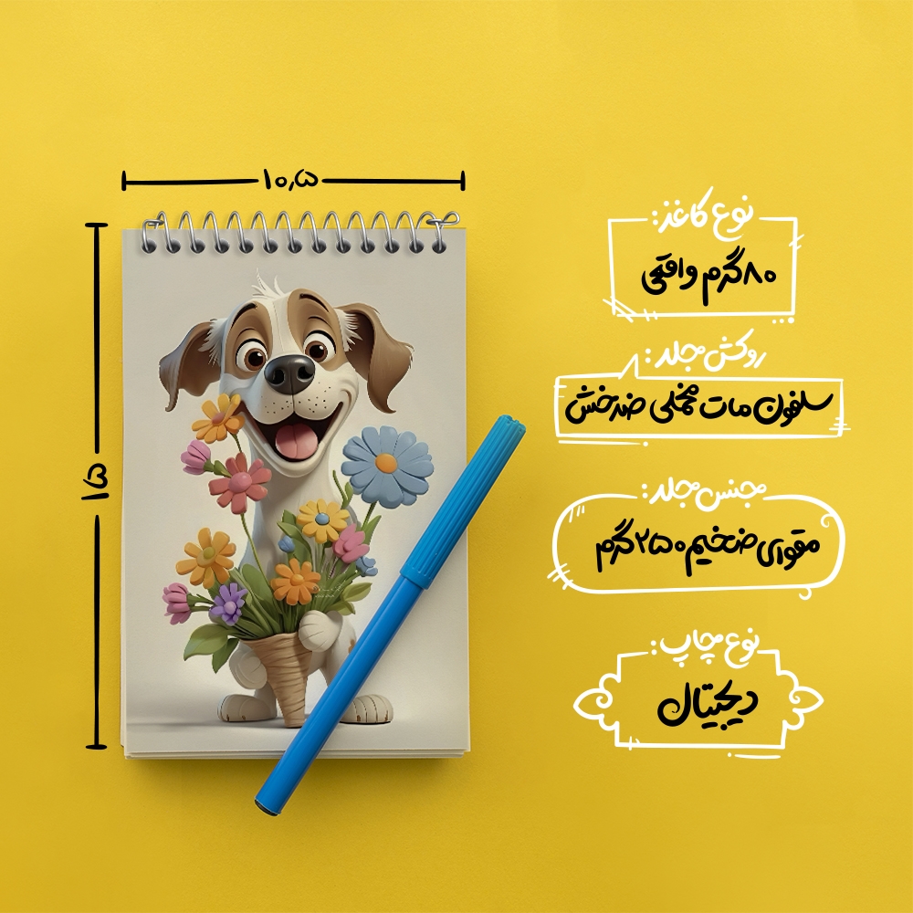 برند خندالو در زمینه تولید انواع دفاتر فانتزی و تحصیلی فعالیت میکند که به دلیل جذابیت ظاهری و طرح های متنوع طرفداران زیادی دارد. دفتر یادداشت خندالو طرح سگ (Dog) محصولی مناسب برای همه عاشقان لوازم التحریر است و همچنین همه کسانی که بنا به موقعیت تحصیل یا شغلشان با دفتر و نوشت افزار زیاد سر و کار دارند. در تولید دفتر یادداشت خندالو طرح سگ (Dog) از نوع صحافی فنر مارپیچ استفاده شده که در این نوع صحافی برگه‌ها به راحتی چرخیده و یا بیرون آورده می شوند.
