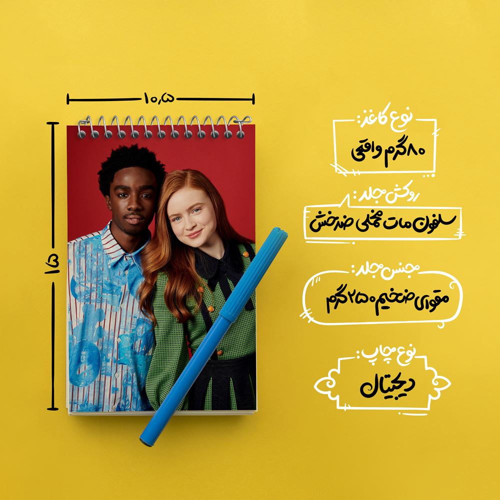 برند خندالو در زمینه تولید انواع دفاتر فانتزی و تحصیلی فعالیت میکند که به دلیل جذابیت ظاهری و طرح های متنوع طرفداران زیادی دارد. دفتر یادداشت خندالو طرح سیدی و کیلب سریال استرنجر تینگز Stranger Things محصولی مناسب برای همه عاشقان لوازم التحریر است و همچنین همه کسانی که بنا به موقعیت تحصیل یا شغلشان با دفتر و نوشت افزار زیاد سر و کار دارند. در تولید دفتر یادداشت خندالو طرح سیدی و کیلب سریال استرنجر تینگز Stranger Things از نوع صحافی فنر مارپیچ استفاده شده که در این نوع صحافی برگهها به راحتی چرخیده و یا بیرون آورده می شوند. دفتر های خندالو دارای جلد انعطاف پذیر از جنس مقوای گلاسه 250 گرم با روکش سلفون مات مخملی است که به شما امکان میدهد از دفتر خود بدون اینکه نگرانی از شکستن یا خراب شدن جلد را داشته باشید استفاده کنید و همچنین در این دفاتر از کاغذ 80 گرم با کیفیت استفاده شده که باعث میشود هنگام نوشتن به خوبی جوهر قلم بر روی صفحه نشسته و از خط خوردگیها جلوگیری کند. دفتر یادداشت خندالو با جنس و دوام مناسب، برگه های کاملاً سفید و خطوط طوسی دقیق را داراست که انسان را به نوشتن منظم و زیبا ترغیب میکند. طراحی کاملاً مناسب این دفاتر، به همراه کیفیت بالا، از آن یک محصول مورد علاقه و قابل اعتماد برای همه مقاطع تحصیلی میسازد. دفتر یادداشت خندالو طرح سیدی و کیلب سریال استرنجر تینگز Stranger Things انتخابی هوشمندانه و مناسب برای افرادی است که به دنبال دفتری با کیفیت و کاربرد عالی هستند. این دفتر، همراه خوبی برای شما در تمام مراحل تحصیل و کار خواهد بود و تجربهای لذتبخش از نوشتن و آموختن را به شما هدیه میدهد.