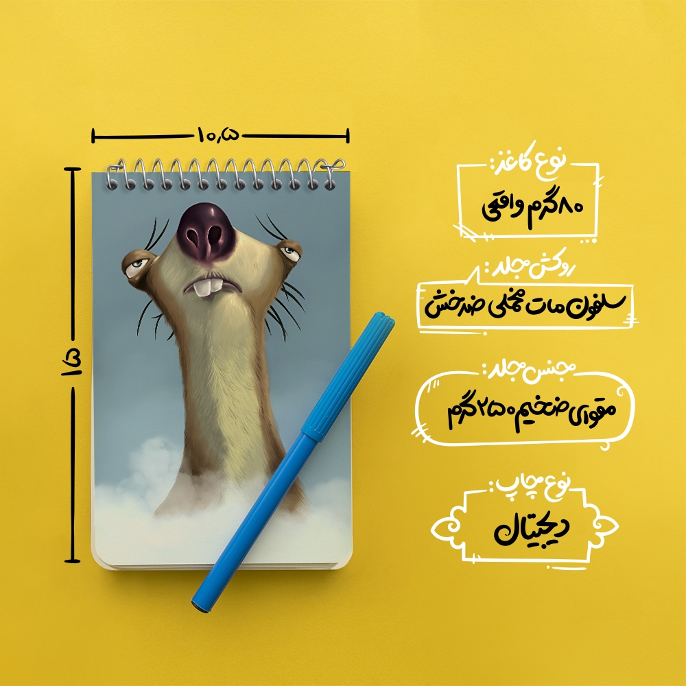 برند خندالو در زمینه تولید انواع دفاتر فانتزی و تحصیلی فعالیت میکند که به دلیل جذابیت ظاهری و طرح های متنوع طرفداران زیادی دارد. دفتر یادداشت خندالو طرح سید عصر یخبندان محصولی مناسب برای همه عاشقان لوازم التحریر است و همچنین همه کسانی که بنا به موقعیت تحصیل یا شغلشان با دفتر و نوشت افزار زیاد سر و کار دارند. در تولید دفتر یادداشت خندالو طرح سید عصر یخبندان از نوع صحافی فنر مارپیچ استفاده شده که در این نوع صحافی برگهها به راحتی چرخیده و یا بیرون آورده می شوند. دفتر های خندالو دارای جلد انعطاف پذیر از جنس مقوای گلاسه 250 گرم با روکش سلفون مات مخملی است که به شما امکان میدهد از دفتر خود بدون اینکه نگرانی از شکستن یا خراب شدن جلد را داشته باشید استفاده کنید و همچنین در این دفاتر از کاغذ 80 گرم با کیفیت استفاده شده که باعث میشود هنگام نوشتن به خوبی جوهر قلم بر روی صفحه نشسته و از خط خوردگیها جلوگیری کند. دفتر یادداشت خندالو با جنس و دوام مناسب، برگه های کاملاً سفید و خطوط طوسی دقیق را داراست که انسان را به نوشتن منظم و زیبا ترغیب میکند. طراحی کاملاً مناسب این دفاتر، به همراه کیفیت بالا، از آن یک محصول مورد علاقه و قابل اعتماد برای همه مقاطع تحصیلی میسازد. دفتر یادداشت خندالو طرح سید عصر یخبندان انتخابی هوشمندانه و مناسب برای افرادی است که به دنبال دفتری با کیفیت و کاربرد عالی هستند. این دفتر، همراه خوبی برای شما در تمام مراحل تحصیل و کار خواهد بود و تجربهای لذتبخش از نوشتن و آموختن را به شما هدیه میدهد.