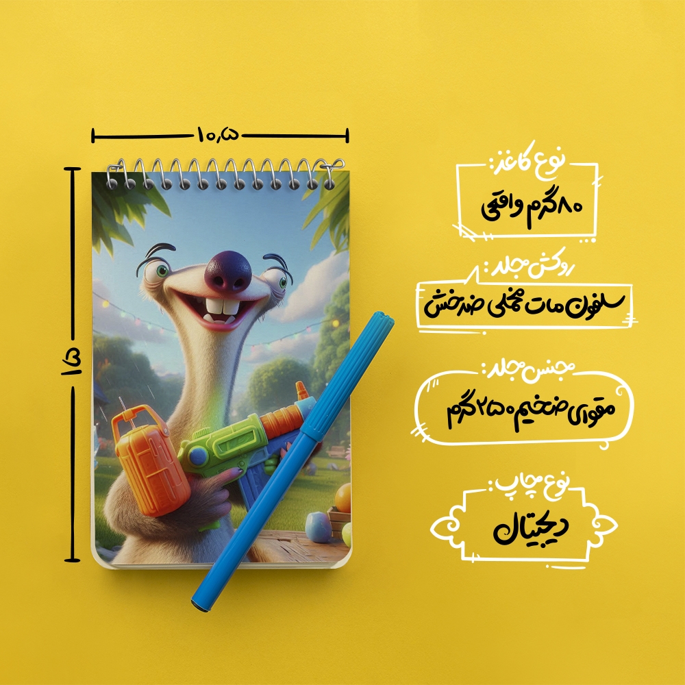 برند خندالو در زمینه تولید انواع دفاتر فانتزی و تحصیلی فعالیت میکند که به دلیل جذابیت ظاهری و طرح های متنوع طرفداران زیادی دارد. دفتر یادداشت خندالو طرح سید عصر یخبندان محصولی مناسب برای همه عاشقان لوازم التحریر است و همچنین همه کسانی که بنا به موقعیت تحصیل یا شغلشان با دفتر و نوشت افزار زیاد سر و کار دارند. در تولید دفتر یادداشت خندالو طرح سید عصر یخبندان از نوع صحافی فنر مارپیچ استفاده شده که در این نوع صحافی برگهها به راحتی چرخیده و یا بیرون آورده می شوند. دفتر های خندالو دارای جلد انعطاف پذیر از جنس مقوای گلاسه 250 گرم با روکش سلفون مات مخملی است که به شما امکان میدهد از دفتر خود بدون اینکه نگرانی از شکستن یا خراب شدن جلد را داشته باشید استفاده کنید و همچنین در این دفاتر از کاغذ 80 گرم با کیفیت استفاده شده که باعث میشود هنگام نوشتن به خوبی جوهر قلم بر روی صفحه نشسته و از خط خوردگیها جلوگیری کند. دفتر یادداشت خندالو با جنس و دوام مناسب، برگه های کاملاً سفید و خطوط طوسی دقیق را داراست که انسان را به نوشتن منظم و زیبا ترغیب میکند. طراحی کاملاً مناسب این دفاتر، به همراه کیفیت بالا، از آن یک محصول مورد علاقه و قابل اعتماد برای همه مقاطع تحصیلی میسازد. دفتر یادداشت خندالو طرح سید عصر یخبندان انتخابی هوشمندانه و مناسب برای افرادی است که به دنبال دفتری با کیفیت و کاربرد عالی هستند. این دفتر، همراه خوبی برای شما در تمام مراحل تحصیل و کار خواهد بود و تجربهای لذتبخش از نوشتن و آموختن را به شما هدیه میدهد.