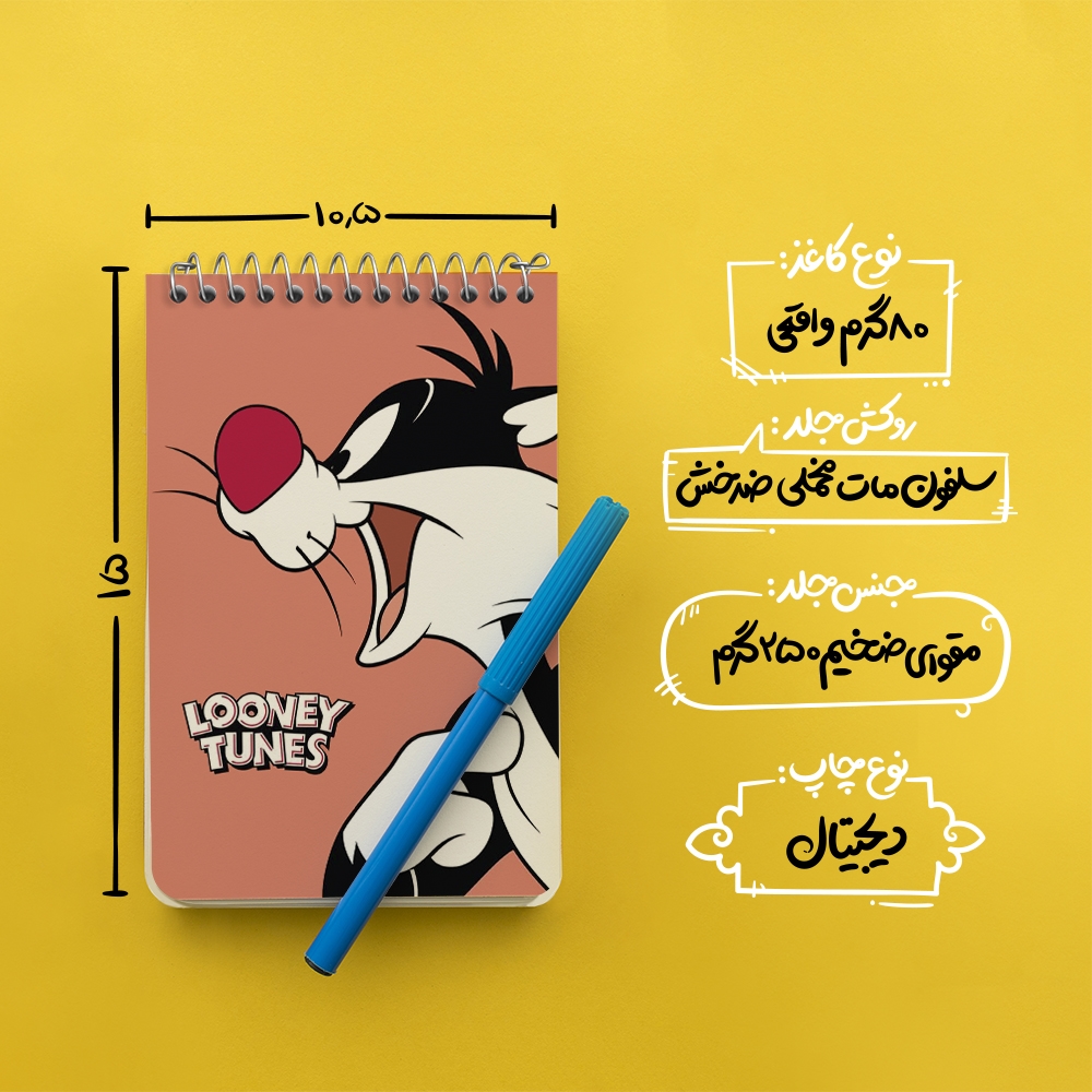 برند خندالو در زمینه تولید انواع دفاتر فانتزی و تحصیلی فعالیت میکند که به دلیل جذابیت ظاهری و طرح های متنوع طرفداران زیادی دارد. دفتر یادداشت خندالو طرح سیلوستر محصولی مناسب برای همه عاشقان لوازم التحریر است و همچنین همه کسانی که بنا به موقعیت تحصیل یا شغلشان با دفتر و نوشت افزار زیاد سر و کار دارند. در تولید دفتر یادداشت خندالو طرح سیلوستر از نوع صحافی فنر مارپیچ استفاده شده که در این نوع صحافی برگه‌ها به راحتی چرخیده و یا بیرون آورده می شوند.