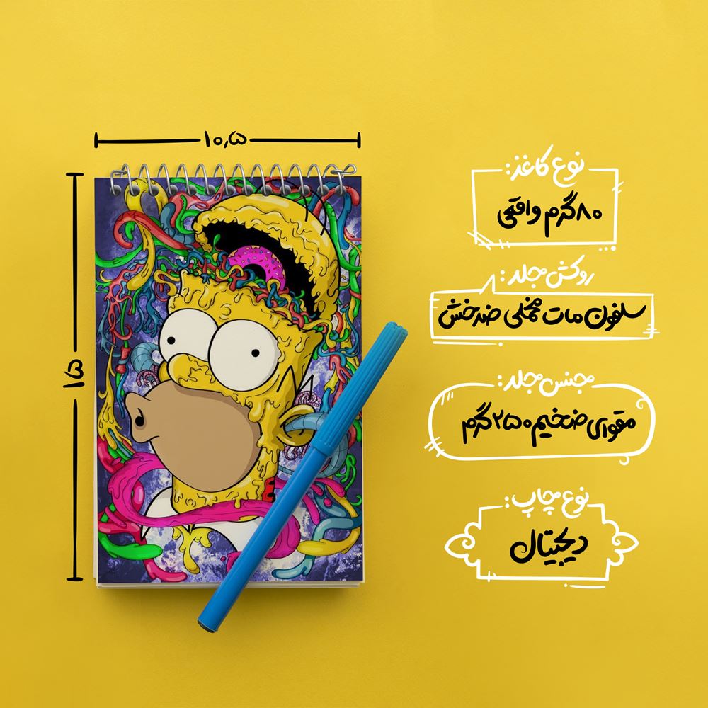 برند خندالو در زمینه تولید انواع دفاتر فانتزی و تحصیلی فعالیت میکند که به دلیل جذابیت ظاهری و طرح های متنوع طرفداران زیادی دارد. دفتر یادداشت خندالو طرح سیمپسون ها The Simpsons محصولی مناسب برای همه عاشقان لوازم التحریر است و همچنین همه کسانی که بنا به موقعیت تحصیل یا شغلشان با دفتر و نوشت افزار زیاد سر و کار دارند. در تولید دفتر یادداشت خندالو طرح سیمپسون ها The Simpsons از نوع صحافی فنر مارپیچ استفاده شده که در این نوع صحافی برگه‌ها به راحتی چرخیده و یا بیرون آورده می شوند.