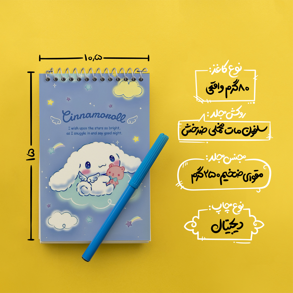 برند خندالو در زمینه تولید انواع دفاتر فانتزی و تحصیلی فعالیت میکند که به دلیل جذابیت ظاهری و طرح های متنوع طرفداران زیادی دارد. دفتر یادداشت خندالو طرح سینامونرول هلو کیتی محصولی مناسب برای همه عاشقان لوازم التحریر است و همچنین همه کسانی که بنا به موقعیت تحصیل یا شغلشان با دفتر و نوشت افزار زیاد سر و کار دارند. در تولید دفتر یادداشت خندالو طرح سینامونرول هلو کیتی از نوع صحافی فنر مارپیچ استفاده شده که در این نوع صحافی برگه‌ها به راحتی چرخیده و یا بیرون آورده می شوند.