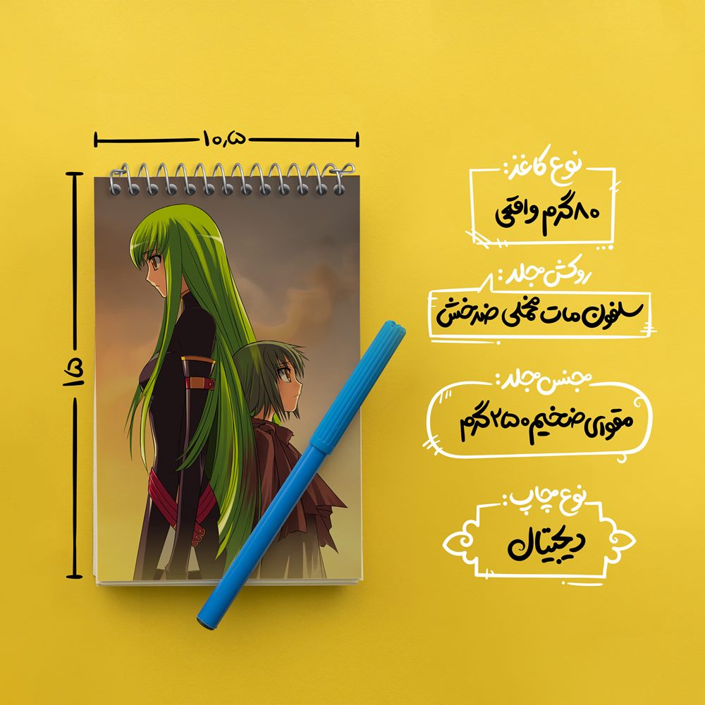 برند خندالو در زمینه تولید انواع دفاتر فانتزی و تحصیلی فعالیت میکند که به دلیل جذابیت ظاهری و طرح های متنوع طرفداران زیادی دارد. دفتر یادداشت خندالو طرح سی سی انیمه کد گیاس Code Geass محصولی مناسب برای همه عاشقان لوازم التحریر است و همچنین همه کسانی که بنا به موقعیت تحصیل یا شغلشان با دفتر و نوشت افزار زیاد سر و کار دارند. در تولید دفتر یادداشت خندالو طرح سی سی انیمه کد گیاس Code Geass از نوع صحافی فنر مارپیچ استفاده شده که در این نوع صحافی برگهها به راحتی چرخیده و یا بیرون آورده می شوند. دفتر های خندالو دارای جلد انعطاف پذیر از جنس مقوای گلاسه 250 گرم با روکش سلفون مات مخملی است که به شما امکان میدهد از دفتر خود بدون اینکه نگرانی از شکستن یا خراب شدن جلد را داشته باشید استفاده کنید و همچنین در این دفاتر از کاغذ 80 گرم با کیفیت استفاده شده که باعث میشود هنگام نوشتن به خوبی جوهر قلم بر روی صفحه نشسته و از خط خوردگیها جلوگیری کند. دفتر یادداشت خندالو با جنس و دوام مناسب، برگه های کاملاً سفید و خطوط طوسی دقیق را داراست که انسان را به نوشتن منظم و زیبا ترغیب میکند. طراحی کاملاً مناسب این دفاتر، به همراه کیفیت بالا، از آن یک محصول مورد علاقه و قابل اعتماد برای همه مقاطع تحصیلی میسازد. دفتر یادداشت خندالو طرح سی سی انیمه کد گیاس Code Geass انتخابی هوشمندانه و مناسب برای افرادی است که به دنبال دفتری با کیفیت و کاربرد عالی هستند. این دفتر، همراه خوبی برای شما در تمام مراحل تحصیل و کار خواهد بود و تجربهای لذتبخش از نوشتن و آموختن را به شما هدیه میدهد.
