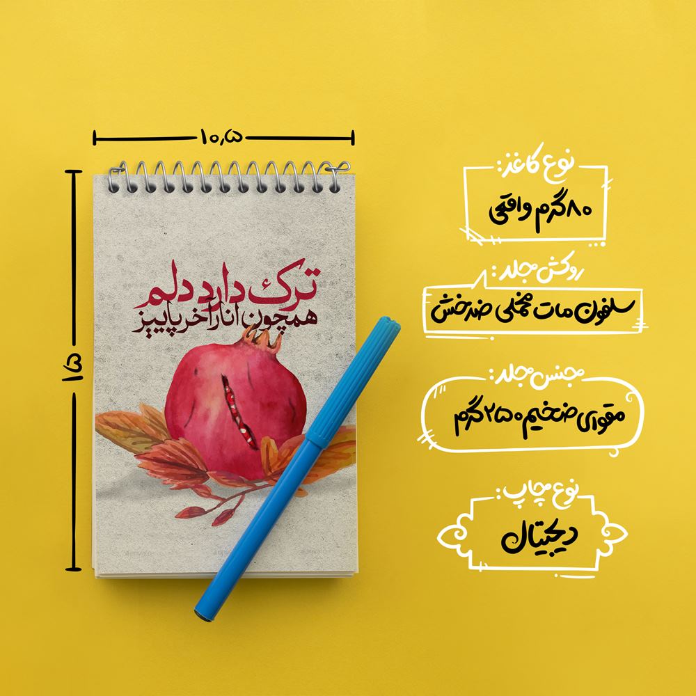 برند خندالو در زمینه تولید انواع دفاتر فانتزی و تحصیلی فعالیت میکند که به دلیل جذابیت ظاهری و طرح های متنوع طرفداران زیادی دارد. دفتر یادداشت خندالو طرح شب یلدا محصولی مناسب برای همه عاشقان لوازم التحریر است و همچنین همه کسانی که بنا به موقعیت تحصیل یا شغلشان با دفتر و نوشت افزار زیاد سر و کار دارند. در تولید دفتر یادداشت خندالو طرح شب یلدا از نوع صحافی فنر مارپیچ استفاده شده که در این نوع صحافی برگه‌ها به راحتی چرخیده و یا بیرون آورده می شوند.