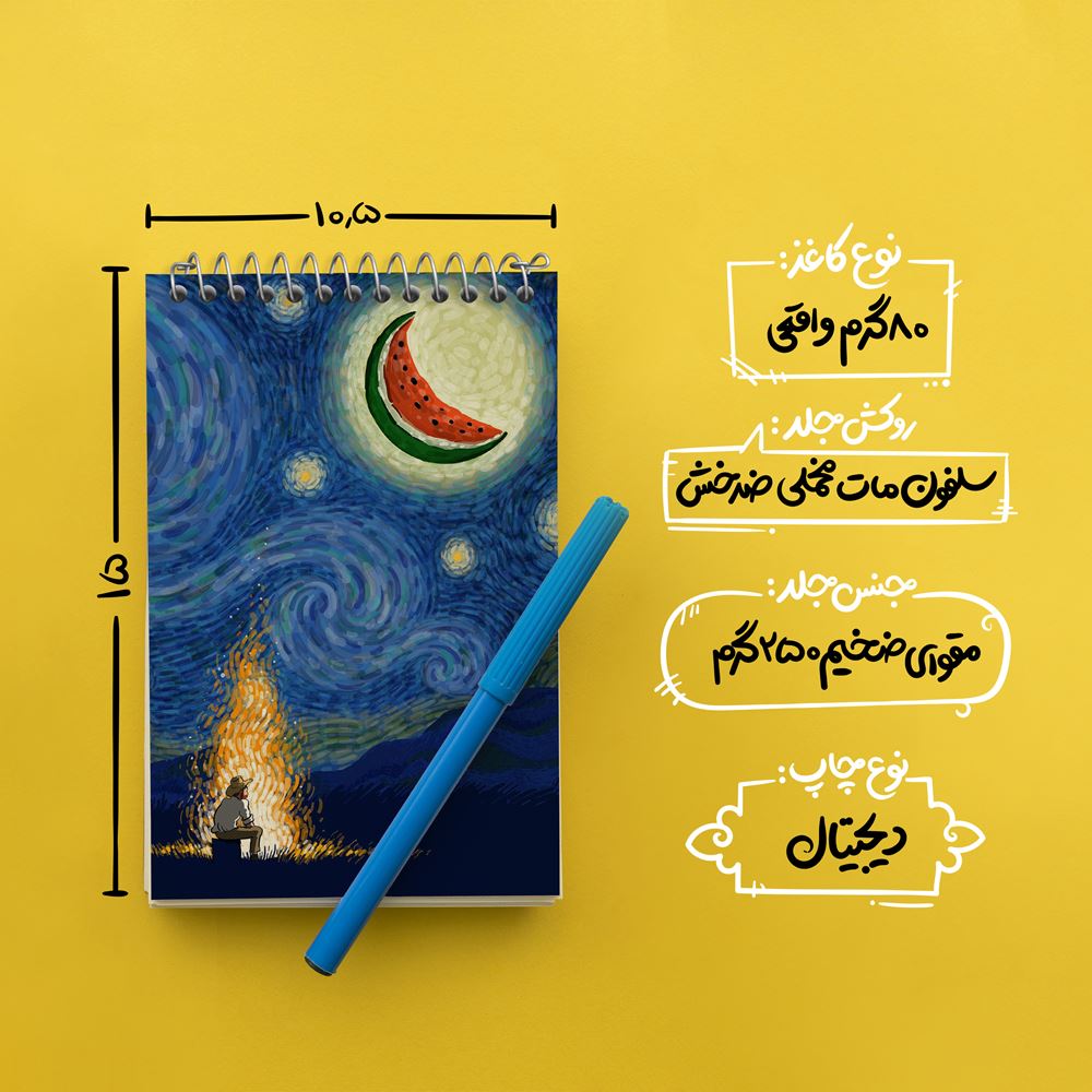 برند خندالو در زمینه تولید انواع دفاتر فانتزی و تحصیلی فعالیت میکند که به دلیل جذابیت ظاهری و طرح های متنوع طرفداران زیادی دارد. دفتر یادداشت خندالو طرح شب یلدا محصولی مناسب برای همه عاشقان لوازم التحریر است و همچنین همه کسانی که بنا به موقعیت تحصیل یا شغلشان با دفتر و نوشت افزار زیاد سر و کار دارند. در تولید دفتر یادداشت خندالو طرح شب یلدا از نوع صحافی فنر مارپیچ استفاده شده که در این نوع صحافی برگهها به راحتی چرخیده و یا بیرون آورده می شوند. دفتر های خندالو دارای جلد انعطاف پذیر از جنس مقوای گلاسه 250 گرم با روکش سلفون مات مخملی است که به شما امکان میدهد از دفتر خود بدون اینکه نگرانی از شکستن یا خراب شدن جلد را داشته باشید استفاده کنید و همچنین در این دفاتر از کاغذ 80 گرم با کیفیت استفاده شده که باعث میشود هنگام نوشتن به خوبی جوهر قلم بر روی صفحه نشسته و از خط خوردگیها جلوگیری کند. دفتر یادداشت خندالو با جنس و دوام مناسب، برگه های کاملاً سفید و خطوط طوسی دقیق را داراست که انسان را به نوشتن منظم و زیبا ترغیب میکند. طراحی کاملاً مناسب این دفاتر، به همراه کیفیت بالا، از آن یک محصول مورد علاقه و قابل اعتماد برای همه مقاطع تحصیلی میسازد. دفتر یادداشت خندالو طرح شب یلدا انتخابی هوشمندانه و مناسب برای افرادی است که به دنبال دفتری با کیفیت و کاربرد عالی هستند. این دفتر، همراه خوبی برای شما در تمام مراحل تحصیل و کار خواهد بود و تجربهای لذتبخش از نوشتن و آموختن را به شما هدیه میدهد.