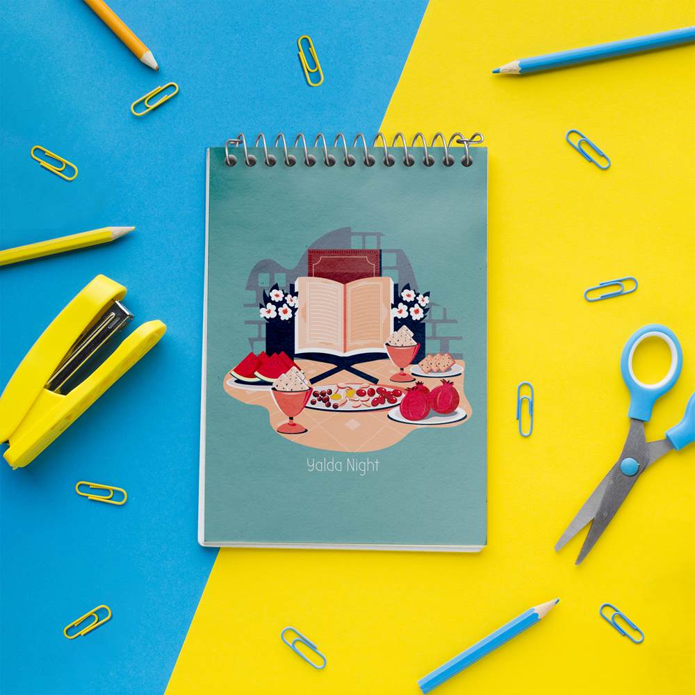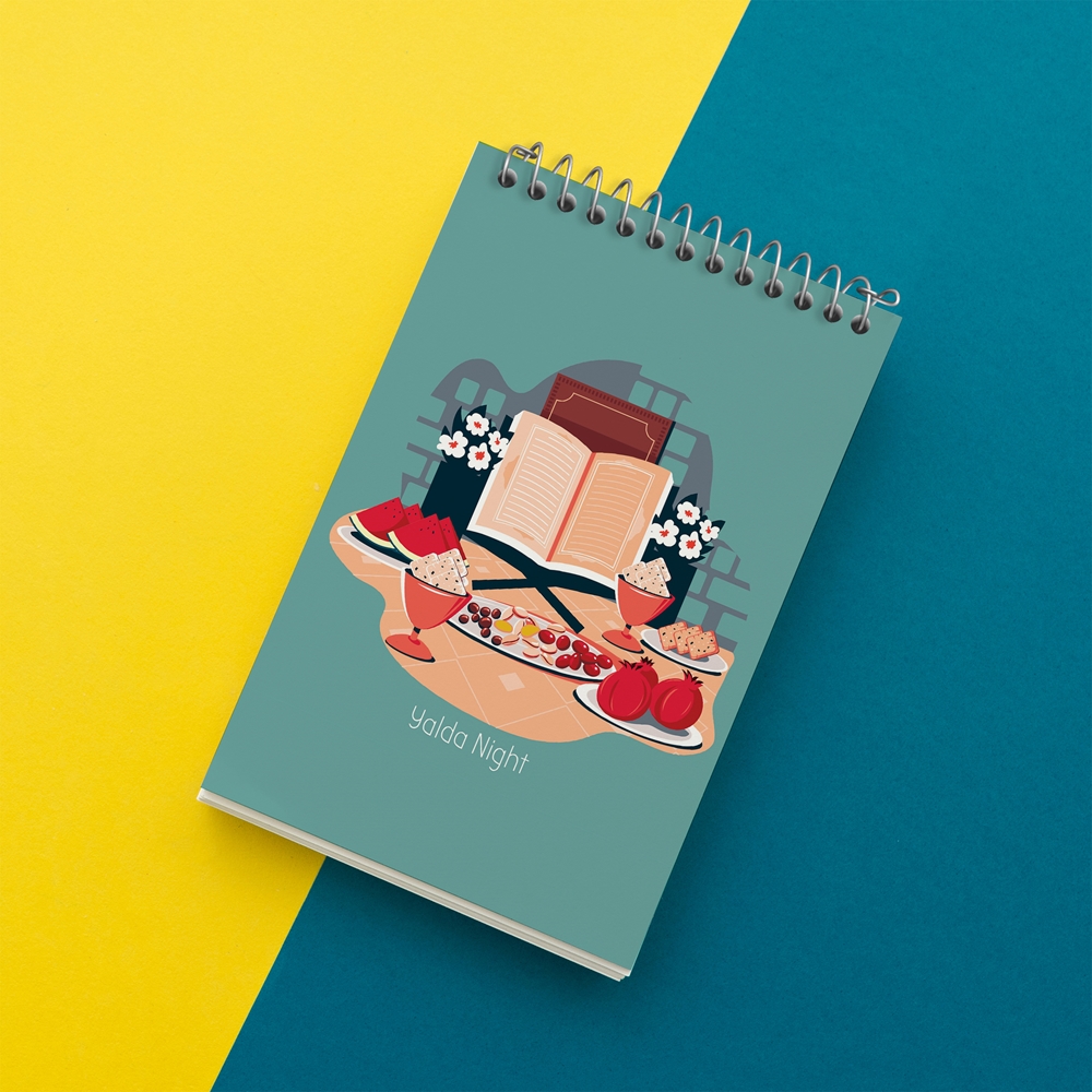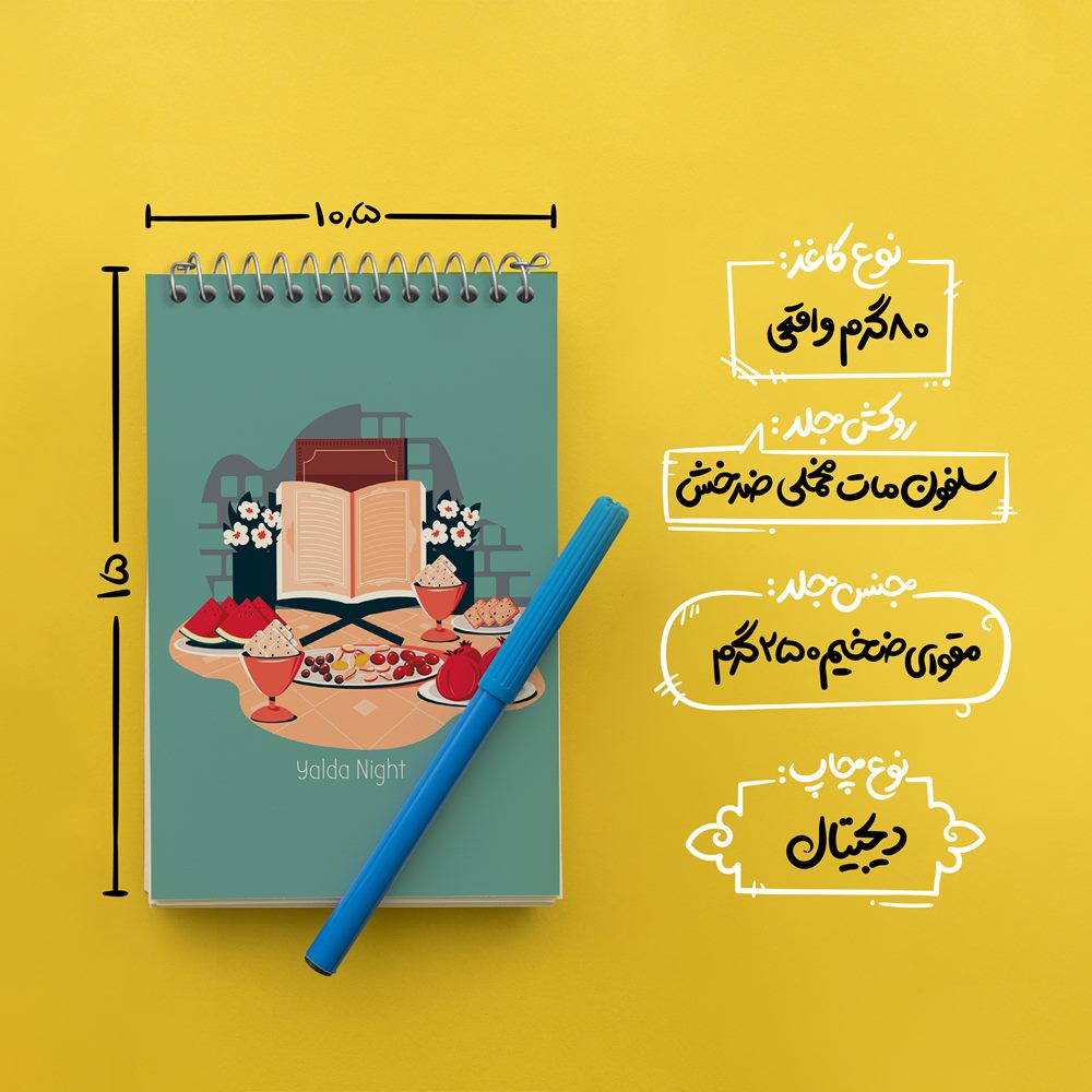 برند خندالو در زمینه تولید انواع دفاتر فانتزی و تحصیلی فعالیت میکند که به دلیل جذابیت ظاهری و طرح های متنوع طرفداران زیادی دارد. دفتر یادداشت خندالو طرح شب یلدا محصولی مناسب برای همه عاشقان لوازم التحریر است و همچنین همه کسانی که بنا به موقعیت تحصیل یا شغلشان با دفتر و نوشت افزار زیاد سر و کار دارند. در تولید دفتر یادداشت خندالو طرح شب یلدا از نوع صحافی فنر مارپیچ استفاده شده که در این نوع صحافی برگه‌ها به راحتی چرخیده و یا بیرون آورده می شوند.