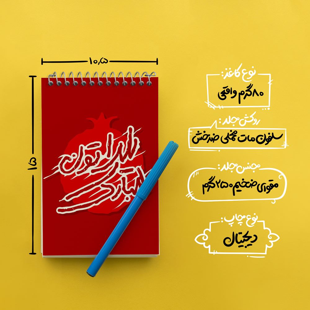 برند خندالو در زمینه تولید انواع دفاتر فانتزی و تحصیلی فعالیت میکند که به دلیل جذابیت ظاهری و طرح های متنوع طرفداران زیادی دارد. دفتر یادداشت خندالو طرح شب یلدا محصولی مناسب برای همه عاشقان لوازم التحریر است و همچنین همه کسانی که بنا به موقعیت تحصیل یا شغلشان با دفتر و نوشت افزار زیاد سر و کار دارند. در تولید دفتر یادداشت خندالو طرح شب یلدا از نوع صحافی فنر مارپیچ استفاده شده که در این نوع صحافی برگهها به راحتی چرخیده و یا بیرون آورده می شوند. دفتر های خندالو دارای جلد انعطاف پذیر از جنس مقوای گلاسه 250 گرم با روکش سلفون مات مخملی است که به شما امکان میدهد از دفتر خود بدون اینکه نگرانی از شکستن یا خراب شدن جلد را داشته باشید استفاده کنید و همچنین در این دفاتر از کاغذ 80 گرم با کیفیت استفاده شده که باعث میشود هنگام نوشتن به خوبی جوهر قلم بر روی صفحه نشسته و از خط خوردگیها جلوگیری کند. دفتر یادداشت خندالو با جنس و دوام مناسب، برگه های کاملاً سفید و خطوط طوسی دقیق را داراست که انسان را به نوشتن منظم و زیبا ترغیب میکند. طراحی کاملاً مناسب این دفاتر، به همراه کیفیت بالا، از آن یک محصول مورد علاقه و قابل اعتماد برای همه مقاطع تحصیلی میسازد. دفتر یادداشت خندالو طرح شب یلدا انتخابی هوشمندانه و مناسب برای افرادی است که به دنبال دفتری با کیفیت و کاربرد عالی هستند. این دفتر، همراه خوبی برای شما در تمام مراحل تحصیل و کار خواهد بود و تجربهای لذتبخش از نوشتن و آموختن را به شما هدیه میدهد.