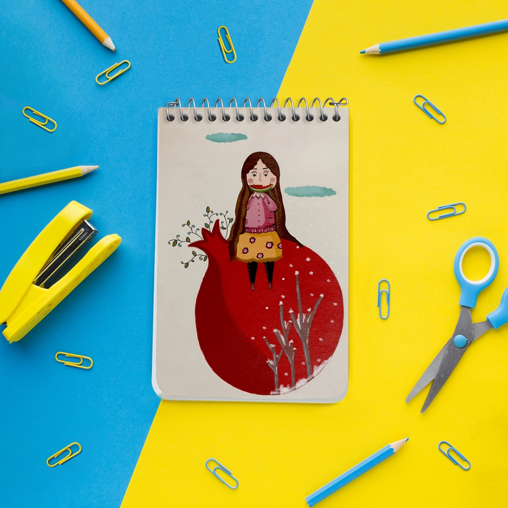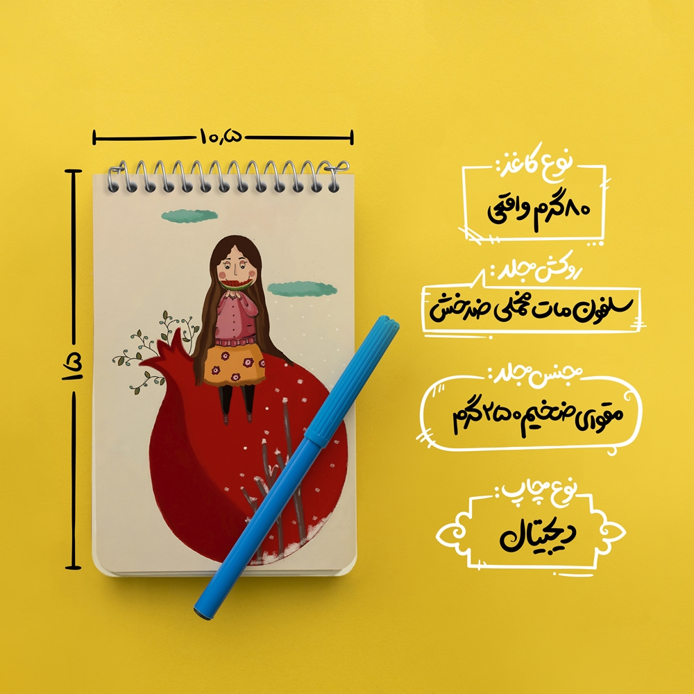 برند خندالو در زمینه تولید انواع دفاتر فانتزی و تحصیلی فعالیت میکند که به دلیل جذابیت ظاهری و طرح های متنوع طرفداران زیادی دارد. دفتر یادداشت خندالو طرح شب یلدا محصولی مناسب برای همه عاشقان لوازم التحریر است و همچنین همه کسانی که بنا به موقعیت تحصیل یا شغلشان با دفتر و نوشت افزار زیاد سر و کار دارند. در تولید دفتر یادداشت خندالو طرح شب یلدا از نوع صحافی فنر مارپیچ استفاده شده که در این نوع صحافی برگه‌ها به راحتی چرخیده و یا بیرون آورده می شوند.