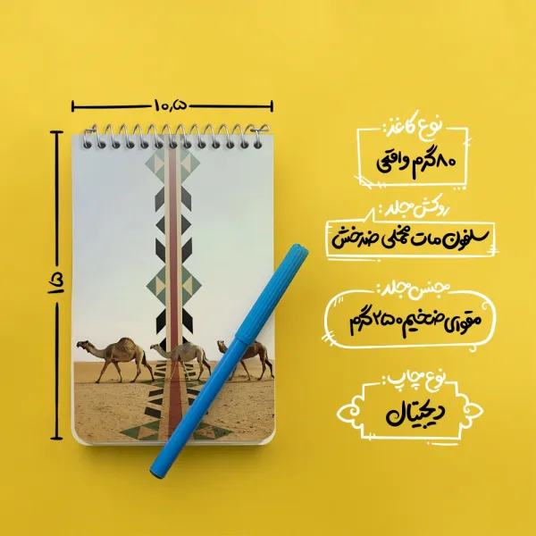 برند خندالو در زمینه تولید انواع دفاتر فانتزی و تحصیلی فعالیت میکند که به دلیل جذابیت ظاهری و طرح های متنوع طرفداران زیادی دارد. دفتر یادداشت خندالو طرح شتر و بیابان محصولی مناسب برای همه عاشقان لوازم التحریر است و همچنین همه کسانی که بنا به موقعیت تحصیل یا شغلشان با دفتر و نوشت افزار زیاد سر و کار دارند. در تولید دفتر یادداشت خندالو طرح شتر و بیابان از نوع صحافی فنر مارپیچ استفاده شده که در این نوع صحافی برگهها به راحتی چرخیده و یا بیرون آورده می شوند. دفتر های خندالو دارای جلد انعطاف پذیر از جنس مقوای گلاسه 250 گرم با روکش سلفون مات مخملی است که به شما امکان میدهد از دفتر خود بدون اینکه نگرانی از شکستن یا خراب شدن جلد را داشته باشید استفاده کنید و همچنین در این دفاتر از کاغذ 80 گرم با کیفیت استفاده شده که باعث میشود هنگام نوشتن به خوبی جوهر قلم بر روی صفحه نشسته و از خط خوردگیها جلوگیری کند. دفتر یادداشت خندالو با جنس و دوام مناسب، برگه های کاملاً سفید و خطوط طوسی دقیق را داراست که انسان را به نوشتن منظم و زیبا ترغیب میکند. طراحی کاملاً مناسب این دفاتر، به همراه کیفیت بالا، از آن یک محصول مورد علاقه و قابل اعتماد برای همه مقاطع تحصیلی میسازد. دفتر یادداشت خندالو طرح شتر و بیابان انتخابی هوشمندانه و مناسب برای افرادی است که به دنبال دفتری با کیفیت و کاربرد عالی هستند. این دفتر، همراه خوبی برای شما در تمام مراحل تحصیل و کار خواهد بود و تجربهای لذتبخش از نوشتن و آموختن را به شما هدیه میدهد.
