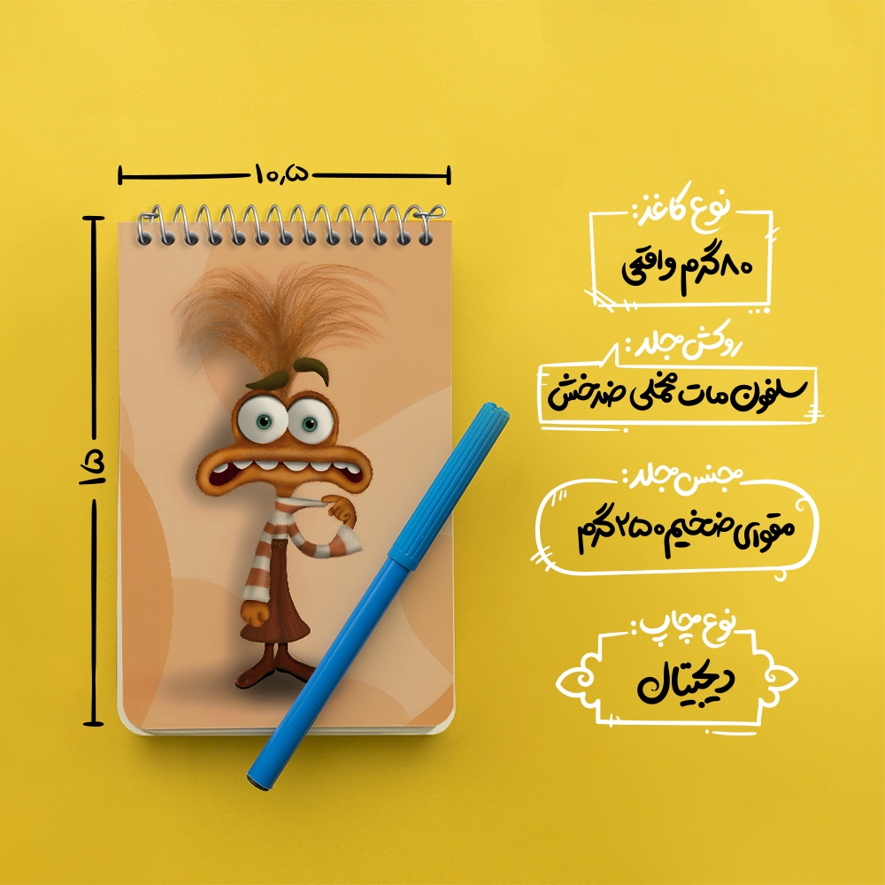 برند خندالو در زمینه تولید انواع دفاتر فانتزی و تحصیلی فعالیت میکند که به دلیل جذابیت ظاهری و طرح های متنوع طرفداران زیادی دارد. دفتر یادداشت خندالو طرح شخصیت اضطراب اینساید اوت محصولی مناسب برای همه عاشقان لوازم التحریر است و همچنین همه کسانی که بنا به موقعیت تحصیل یا شغلشان با دفتر و نوشت افزار زیاد سر و کار دارند. در تولید دفتر یادداشت خندالو طرح شخصیت اضطراب اینساید اوت از نوع صحافی فنر مارپیچ استفاده شده که در این نوع صحافی برگه‌ها به راحتی چرخیده و یا بیرون آورده می شوند.