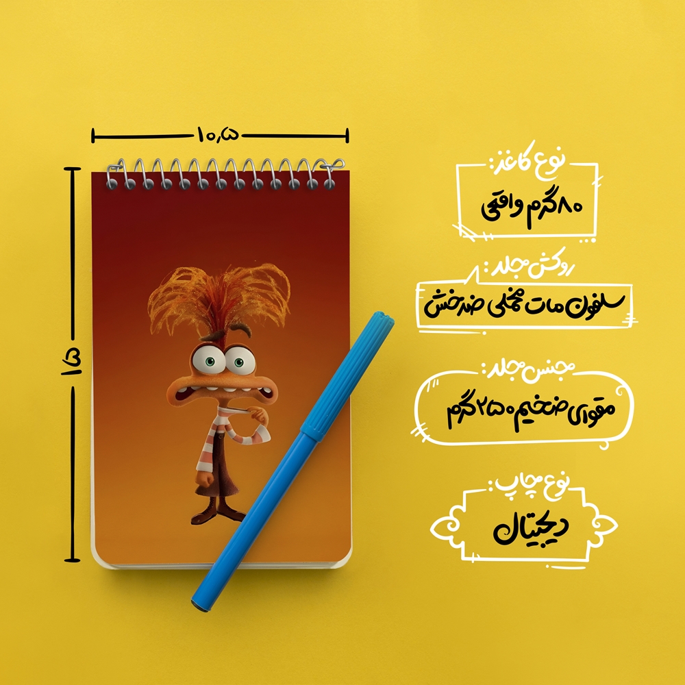 برند خندالو در زمینه تولید انواع دفاتر فانتزی و تحصیلی فعالیت میکند که به دلیل جذابیت ظاهری و طرح های متنوع طرفداران زیادی دارد. دفتر یادداشت خندالو طرح شخصیت اضطراب اینساید اوت محصولی مناسب برای همه عاشقان لوازم التحریر است و همچنین همه کسانی که بنا به موقعیت تحصیل یا شغلشان با دفتر و نوشت افزار زیاد سر و کار دارند. در تولید دفتر یادداشت خندالو طرح شخصیت اضطراب اینساید اوت از نوع صحافی فنر مارپیچ استفاده شده که در این نوع صحافی برگه‌ها به راحتی چرخیده و یا بیرون آورده می شوند.