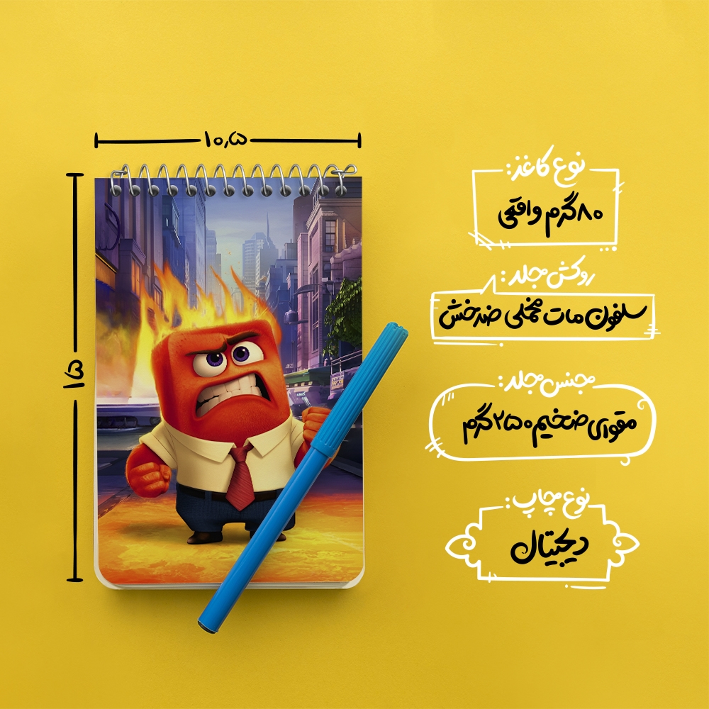 برند خندالو در زمینه تولید انواع دفاتر فانتزی و تحصیلی فعالیت میکند که به دلیل جذابیت ظاهری و طرح های متنوع طرفداران زیادی دارد. دفتر یادداشت خندالو طرح شخصیت خشم اینساید اوت محصولی مناسب برای همه عاشقان لوازم التحریر است و همچنین همه کسانی که بنا به موقعیت تحصیل یا شغلشان با دفتر و نوشت افزار زیاد سر و کار دارند. در تولید دفتر یادداشت خندالو طرح شخصیت خشم اینساید اوت از نوع صحافی فنر مارپیچ استفاده شده که در این نوع صحافی برگهها به راحتی چرخیده و یا بیرون آورده می شوند. دفتر های خندالو دارای جلد انعطاف پذیر از جنس مقوای گلاسه 250 گرم با روکش سلفون مات مخملی است که به شما امکان میدهد از دفتر خود بدون اینکه نگرانی از شکستن یا خراب شدن جلد را داشته باشید استفاده کنید و همچنین در این دفاتر از کاغذ 80 گرم با کیفیت استفاده شده که باعث میشود هنگام نوشتن به خوبی جوهر قلم بر روی صفحه نشسته و از خط خوردگیها جلوگیری کند. دفتر یادداشت خندالو با جنس و دوام مناسب، برگه های کاملاً سفید و خطوط طوسی دقیق را داراست که انسان را به نوشتن منظم و زیبا ترغیب میکند. طراحی کاملاً مناسب این دفاتر، به همراه کیفیت بالا، از آن یک محصول مورد علاقه و قابل اعتماد برای همه مقاطع تحصیلی میسازد. دفتر یادداشت خندالو طرح شخصیت خشم اینساید اوت انتخابی هوشمندانه و مناسب برای افرادی است که به دنبال دفتری با کیفیت و کاربرد عالی هستند. این دفتر، همراه خوبی برای شما در تمام مراحل تحصیل و کار خواهد بود و تجربهای لذتبخش از نوشتن و آموختن را به شما هدیه میدهد.
