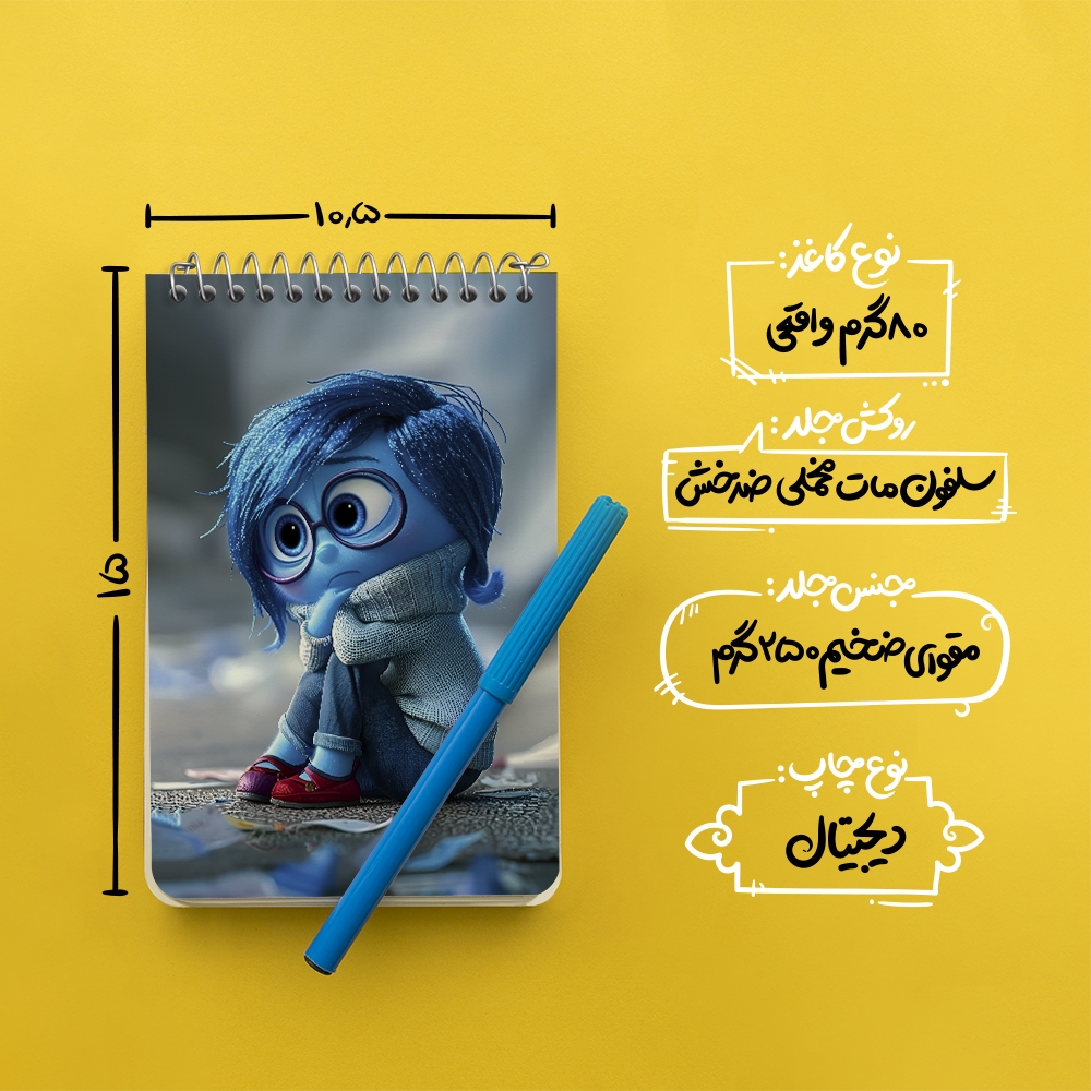 برند خندالو در زمینه تولید انواع دفاتر فانتزی و تحصیلی فعالیت میکند که به دلیل جذابیت ظاهری و طرح های متنوع طرفداران زیادی دارد. دفتر یادداشت خندالو طرح شخصیت غم اینساید اوت محصولی مناسب برای همه عاشقان لوازم التحریر است و همچنین همه کسانی که بنا به موقعیت تحصیل یا شغلشان با دفتر و نوشت افزار زیاد سر و کار دارند. در تولید دفتر یادداشت خندالو طرح شخصیت غم اینساید اوت از نوع صحافی فنر مارپیچ استفاده شده که در این نوع صحافی برگه‌ها به راحتی چرخیده و یا بیرون آورده می شوند.