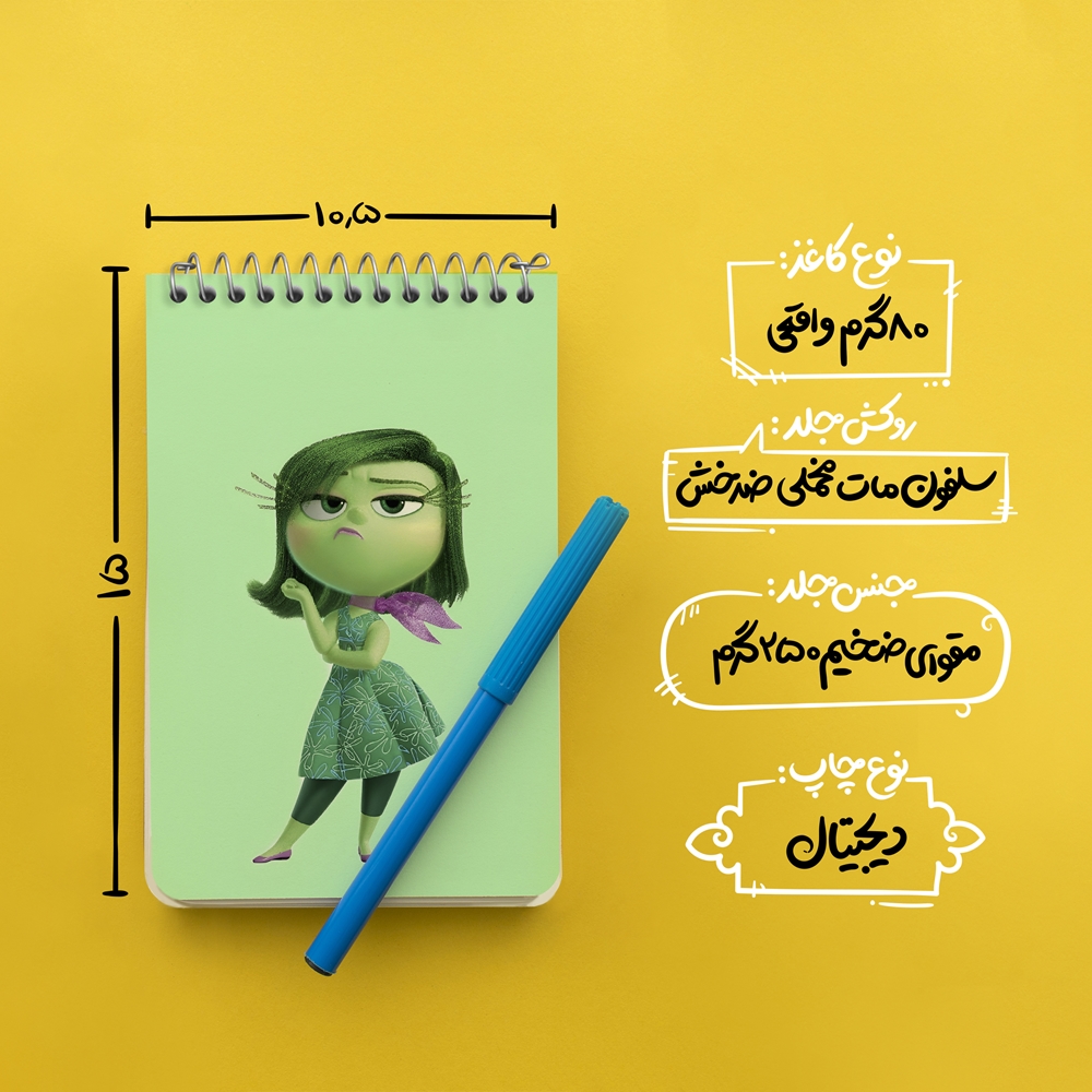 برند خندالو در زمینه تولید انواع دفاتر فانتزی و تحصیلی فعالیت میکند که به دلیل جذابیت ظاهری و طرح های متنوع طرفداران زیادی دارد. دفتر یادداشت خندالو طرح شخصیت نفرت اینساید اوت محصولی مناسب برای همه عاشقان لوازم التحریر است و همچنین همه کسانی که بنا به موقعیت تحصیل یا شغلشان با دفتر و نوشت افزار زیاد سر و کار دارند. در تولید دفتر یادداشت خندالو طرح شخصیت نفرت اینساید اوت از نوع صحافی فنر مارپیچ استفاده شده که در این نوع صحافی برگهها به راحتی چرخیده و یا بیرون آورده می شوند. دفتر های خندالو دارای جلد انعطاف پذیر از جنس مقوای گلاسه 250 گرم با روکش سلفون مات مخملی است که به شما امکان میدهد از دفتر خود بدون اینکه نگرانی از شکستن یا خراب شدن جلد را داشته باشید استفاده کنید و همچنین در این دفاتر از کاغذ 80 گرم با کیفیت استفاده شده که باعث میشود هنگام نوشتن به خوبی جوهر قلم بر روی صفحه نشسته و از خط خوردگیها جلوگیری کند. دفتر یادداشت خندالو با جنس و دوام مناسب، برگه های کاملاً سفید و خطوط طوسی دقیق را داراست که انسان را به نوشتن منظم و زیبا ترغیب میکند. طراحی کاملاً مناسب این دفاتر، به همراه کیفیت بالا، از آن یک محصول مورد علاقه و قابل اعتماد برای همه مقاطع تحصیلی میسازد. دفتر یادداشت خندالو طرح شخصیت نفرت اینساید اوت انتخابی هوشمندانه و مناسب برای افرادی است که به دنبال دفتری با کیفیت و کاربرد عالی هستند. این دفتر، همراه خوبی برای شما در تمام مراحل تحصیل و کار خواهد بود و تجربهای لذتبخش از نوشتن و آموختن را به شما هدیه میدهد.