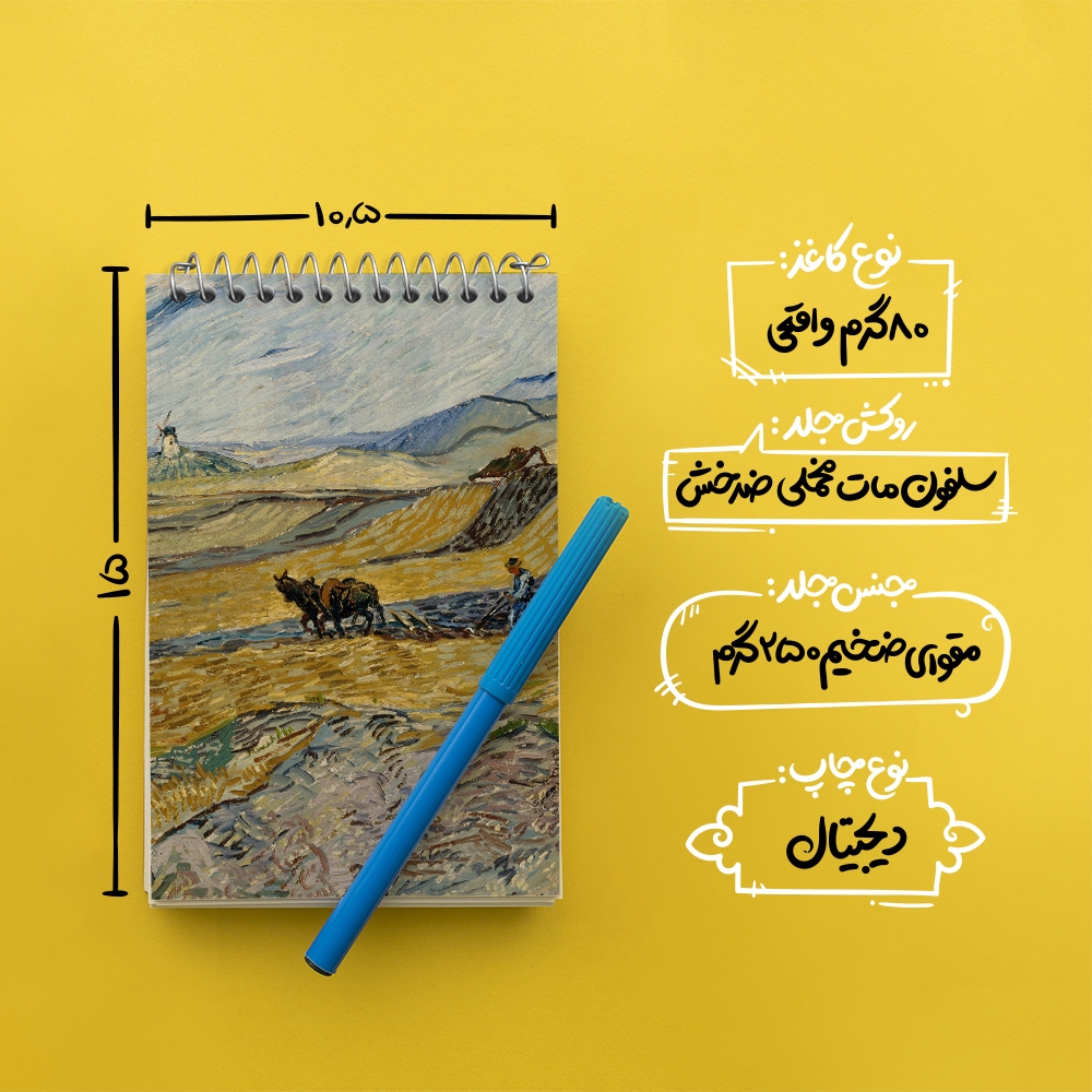 برند خندالو در زمینه تولید انواع دفاتر فانتزی و تحصیلی فعالیت میکند که به دلیل جذابیت ظاهری و طرح های متنوع طرفداران زیادی دارد. دفتر یادداشت خندالو طرح شخم زدن مزرعه ونسان ونگوگ (Van Gogh) محصولی مناسب برای همه عاشقان لوازم التحریر است و همچنین همه کسانی که بنا به موقعیت تحصیل یا شغلشان با دفتر و نوشت افزار زیاد سر و کار دارند. در تولید دفتر یادداشت خندالو طرح شخم زدن مزرعه ونسان ونگوگ (Van Gogh) از نوع صحافی فنر مارپیچ استفاده شده که در این نوع صحافی برگهها به راحتی چرخیده و یا بیرون آورده می شوند. دفتر های خندالو دارای جلد انعطاف پذیر از جنس مقوای گلاسه 250 گرم با روکش سلفون مات مخملی است که به شما امکان میدهد از دفتر خود بدون اینکه نگرانی از شکستن یا خراب شدن جلد را داشته باشید استفاده کنید و همچنین در این دفاتر از کاغذ 80 گرم با کیفیت استفاده شده که باعث میشود هنگام نوشتن به خوبی جوهر قلم بر روی صفحه نشسته و از خط خوردگیها جلوگیری کند. دفتر یادداشت خندالو با جنس و دوام مناسب، برگه های کاملاً سفید و خطوط طوسی دقیق را داراست که انسان را به نوشتن منظم و زیبا ترغیب میکند. طراحی کاملاً مناسب این دفاتر، به همراه کیفیت بالا، از آن یک محصول مورد علاقه و قابل اعتماد برای همه مقاطع تحصیلی میسازد. دفتر یادداشت خندالو طرح شخم زدن مزرعه ونسان ونگوگ (Van Gogh) انتخابی هوشمندانه و مناسب برای افرادی است که به دنبال دفتری با کیفیت و کاربرد عالی هستند. این دفتر، همراه خوبی برای شما در تمام مراحل تحصیل و کار خواهد بود و تجربهای لذتبخش از نوشتن و آموختن را به شما هدیه میدهد.