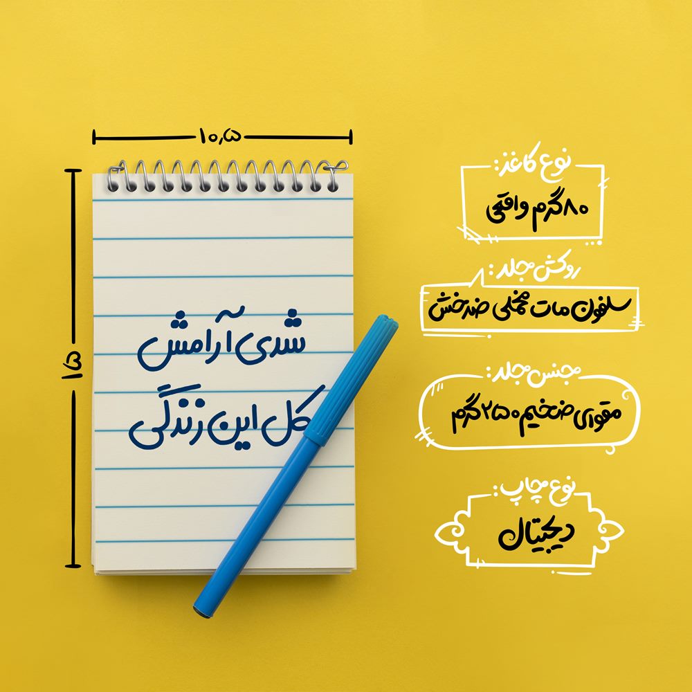 برند خندالو در زمینه تولید انواع دفاتر فانتزی و تحصیلی فعالیت میکند که به دلیل جذابیت ظاهری و طرح های متنوع طرفداران زیادی دارد. دفتر یادداشت خندالو طرح شدی آرامش کل این زندگی محصولی مناسب برای همه عاشقان لوازم التحریر است و همچنین همه کسانی که بنا به موقعیت تحصیل یا شغلشان با دفتر و نوشت افزار زیاد سر و کار دارند. در تولید دفتر یادداشت خندالو طرح شدی آرامش کل این زندگی از نوع صحافی فنر مارپیچ استفاده شده که در این نوع صحافی برگهها به راحتی چرخیده و یا بیرون آورده می شوند. دفتر های خندالو دارای جلد انعطاف پذیر از جنس مقوای گلاسه 250 گرم با روکش سلفون مات مخملی است که به شما امکان میدهد از دفتر خود بدون اینکه نگرانی از شکستن یا خراب شدن جلد را داشته باشید استفاده کنید و همچنین در این دفاتر از کاغذ 80 گرم با کیفیت استفاده شده که باعث میشود هنگام نوشتن به خوبی جوهر قلم بر روی صفحه نشسته و از خط خوردگیها جلوگیری کند. دفتر یادداشت خندالو با جنس و دوام مناسب، برگه های کاملاً سفید و خطوط طوسی دقیق را داراست که انسان را به نوشتن منظم و زیبا ترغیب میکند. طراحی کاملاً مناسب این دفاتر، به همراه کیفیت بالا، از آن یک محصول مورد علاقه و قابل اعتماد برای همه مقاطع تحصیلی میسازد. دفتر یادداشت خندالو طرح شدی آرامش کل این زندگی انتخابی هوشمندانه و مناسب برای افرادی است که به دنبال دفتری با کیفیت و کاربرد عالی هستند. این دفتر، همراه خوبی برای شما در تمام مراحل تحصیل و کار خواهد بود و تجربهای لذتبخش از نوشتن و آموختن را به شما هدیه میدهد.