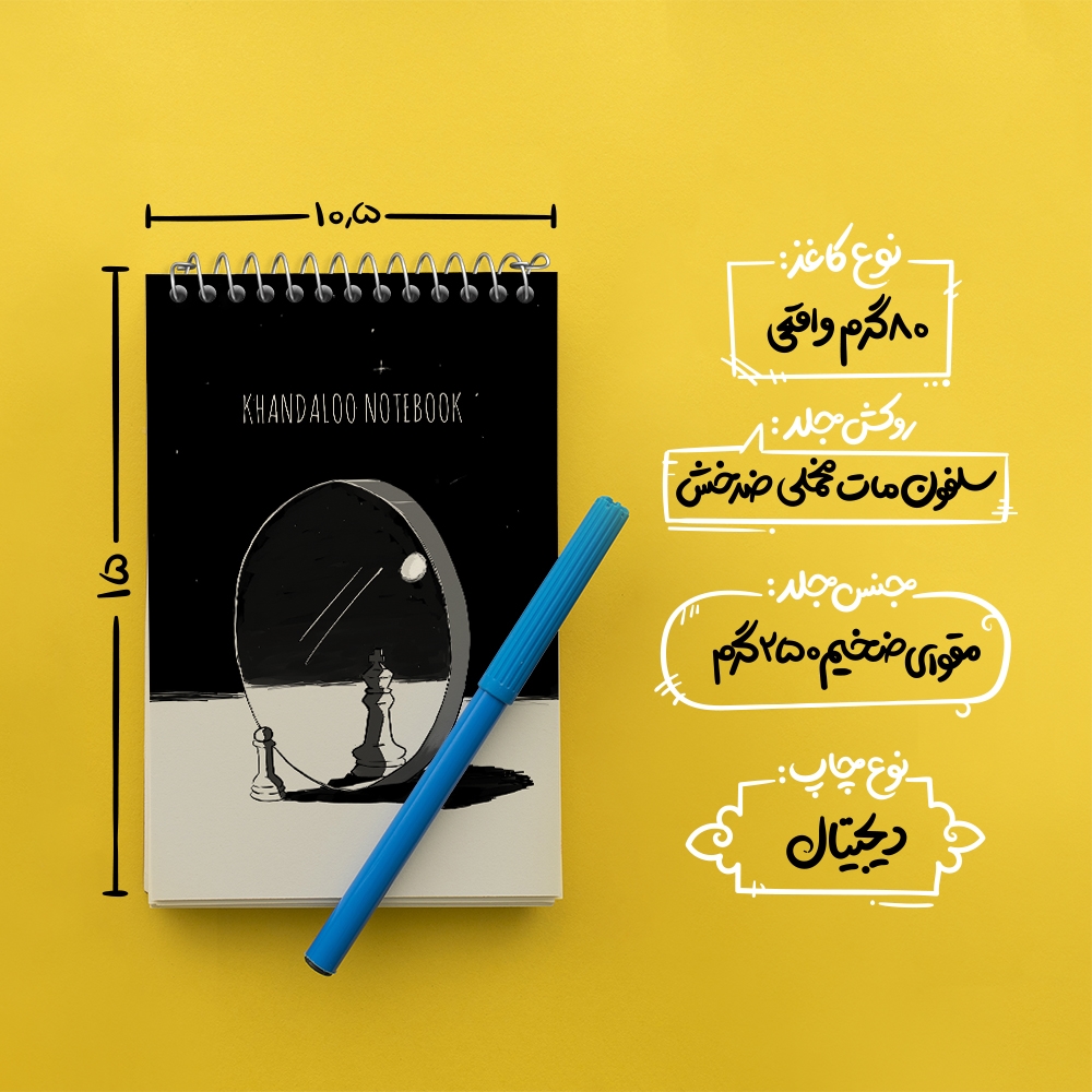 برند خندالو در زمینه تولید انواع دفاتر فانتزی و تحصیلی فعالیت میکند که به دلیل جذابیت ظاهری و طرح های متنوع طرفداران زیادی دارد. دفتر یادداشت خندالو طرح شطرنج محصولی مناسب برای همه عاشقان لوازم التحریر است و همچنین همه کسانی که بنا به موقعیت تحصیل یا شغلشان با دفتر و نوشت افزار زیاد سر و کار دارند. در تولید دفتر یادداشت خندالو طرح شطرنج از نوع صحافی فنر مارپیچ استفاده شده که در این نوع صحافی برگه‌ها به راحتی چرخیده و یا بیرون آورده می شوند.