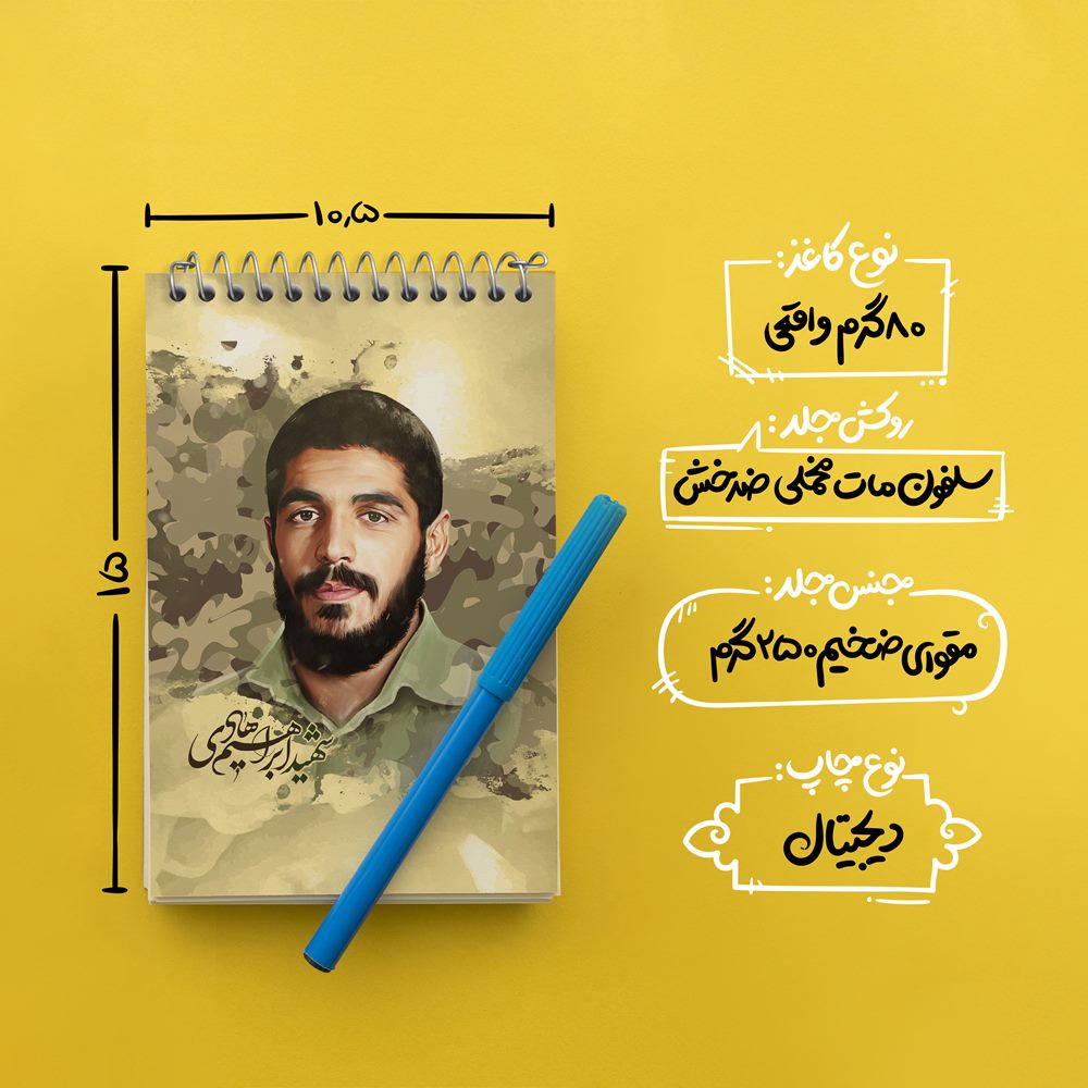 برند خندالو در زمینه تولید انواع دفاتر فانتزی و تحصیلی فعالیت میکند که به دلیل جذابیت ظاهری و طرح های متنوع طرفداران زیادی دارد. دفتر یادداشت خندالو طرح شهید ابراهیم هادی محصولی مناسب برای همه عاشقان لوازم التحریر است و همچنین همه کسانی که بنا به موقعیت تحصیل یا شغلشان با دفتر و نوشت افزار زیاد سر و کار دارند. در تولید دفتر یادداشت خندالو طرح شهید ابراهیم هادی از نوع صحافی فنر مارپیچ استفاده شده که در این نوع صحافی برگه‌ها به راحتی چرخیده و یا بیرون آورده می شوند.