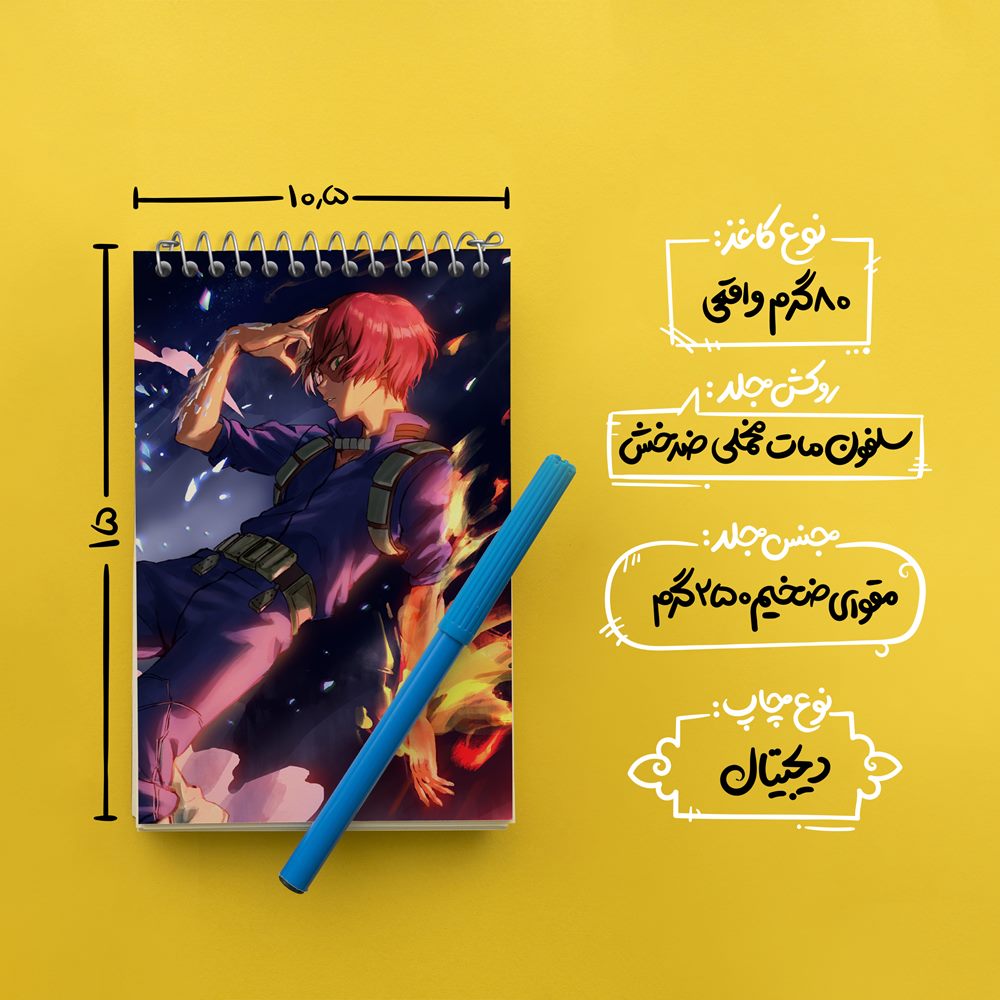 برند خندالو در زمینه تولید انواع دفاتر فانتزی و تحصیلی فعالیت میکند که به دلیل جذابیت ظاهری و طرح های متنوع طرفداران زیادی دارد. دفتر یادداشت خندالو طرح شوتو تودوروکی انیمه آکادمی قهرمان من My Hero Academia محصولی مناسب برای همه عاشقان لوازم التحریر است و همچنین همه کسانی که بنا به موقعیت تحصیل یا شغلشان با دفتر و نوشت افزار زیاد سر و کار دارند. در تولید دفتر یادداشت خندالو طرح شوتو تودوروکی انیمه آکادمی قهرمان من My Hero Academia از نوع صحافی فنر مارپیچ استفاده شده که در این نوع صحافی برگهها به راحتی چرخیده و یا بیرون آورده می شوند. دفتر های خندالو دارای جلد انعطاف پذیر از جنس مقوای گلاسه 250 گرم با روکش سلفون مات مخملی است که به شما امکان میدهد از دفتر خود بدون اینکه نگرانی از شکستن یا خراب شدن جلد را داشته باشید استفاده کنید و همچنین در این دفاتر از کاغذ 80 گرم با کیفیت استفاده شده که باعث میشود هنگام نوشتن به خوبی جوهر قلم بر روی صفحه نشسته و از خط خوردگیها جلوگیری کند. دفتر یادداشت خندالو با جنس و دوام مناسب، برگه های کاملاً سفید و خطوط طوسی دقیق را داراست که انسان را به نوشتن منظم و زیبا ترغیب میکند. طراحی کاملاً مناسب این دفاتر، به همراه کیفیت بالا، از آن یک محصول مورد علاقه و قابل اعتماد برای همه مقاطع تحصیلی میسازد. دفتر یادداشت خندالو طرح شوتو تودوروکی انیمه آکادمی قهرمان من My Hero Academia انتخابی هوشمندانه و مناسب برای افرادی است که به دنبال دفتری با کیفیت و کاربرد عالی هستند. این دفتر، همراه خوبی برای شما در تمام مراحل تحصیل و کار خواهد بود و تجربهای لذتبخش از نوشتن و آموختن را به شما هدیه میدهد.