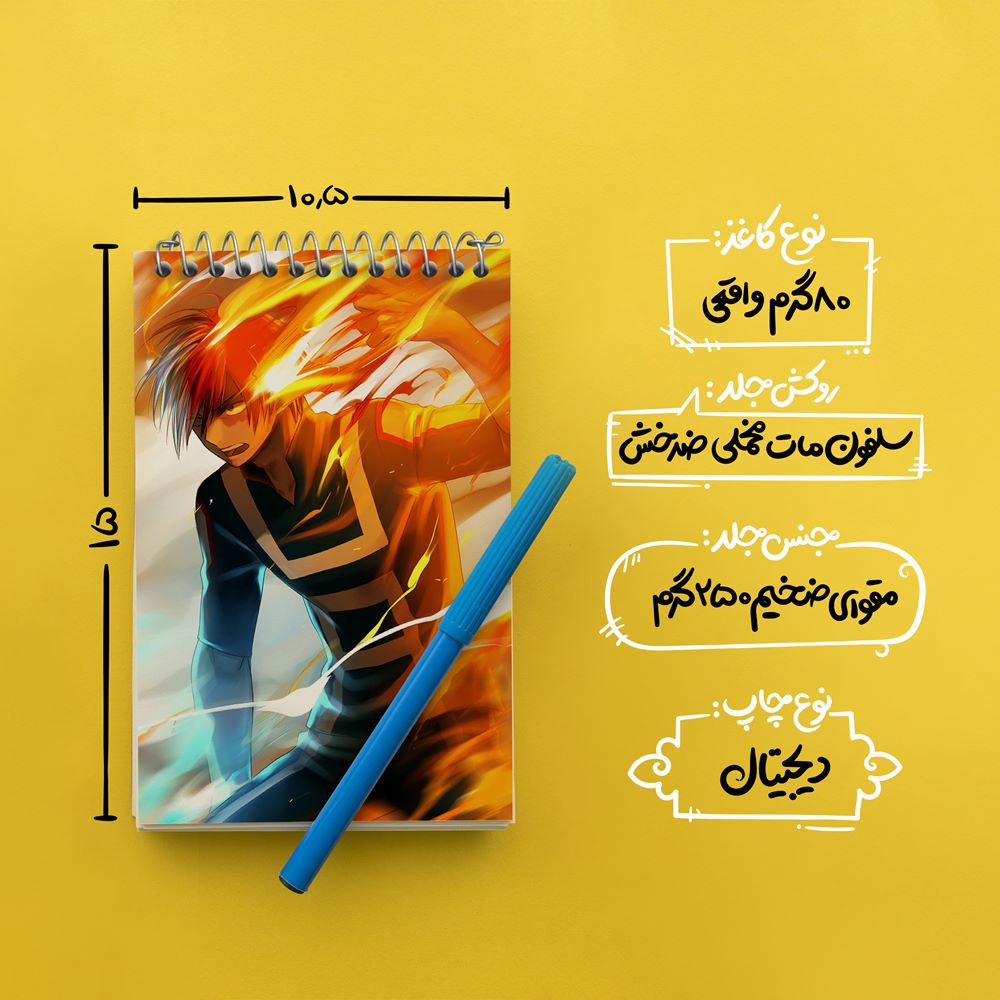 برند خندالو در زمینه تولید انواع دفاتر فانتزی و تحصیلی فعالیت میکند که به دلیل جذابیت ظاهری و طرح های متنوع طرفداران زیادی دارد. دفتر یادداشت خندالو طرح شوتو تودوروکی انیمه قهرمان من محصولی مناسب برای همه عاشقان لوازم التحریر است و همچنین همه کسانی که بنا به موقعیت تحصیل یا شغلشان با دفتر و نوشت افزار زیاد سر و کار دارند. در تولید دفتر یادداشت خندالو طرح شوتو تودوروکی انیمه قهرمان من از نوع صحافی فنر مارپیچ استفاده شده که در این نوع صحافی برگهها به راحتی چرخیده و یا بیرون آورده می شوند. دفتر های خندالو دارای جلد انعطاف پذیر از جنس مقوای گلاسه 250 گرم با روکش سلفون مات مخملی است که به شما امکان میدهد از دفتر خود بدون اینکه نگرانی از شکستن یا خراب شدن جلد را داشته باشید استفاده کنید و همچنین در این دفاتر از کاغذ 80 گرم با کیفیت استفاده شده که باعث میشود هنگام نوشتن به خوبی جوهر قلم بر روی صفحه نشسته و از خط خوردگیها جلوگیری کند. دفتر یادداشت خندالو با جنس و دوام مناسب، برگه های کاملاً سفید و خطوط طوسی دقیق را داراست که انسان را به نوشتن منظم و زیبا ترغیب میکند. طراحی کاملاً مناسب این دفاتر، به همراه کیفیت بالا، از آن یک محصول مورد علاقه و قابل اعتماد برای همه مقاطع تحصیلی میسازد. دفتر یادداشت خندالو طرح شوتو تودوروکی انیمه قهرمان من انتخابی هوشمندانه و مناسب برای افرادی است که به دنبال دفتری با کیفیت و کاربرد عالی هستند. این دفتر، همراه خوبی برای شما در تمام مراحل تحصیل و کار خواهد بود و تجربهای لذتبخش از نوشتن و آموختن را به شما هدیه میدهد.