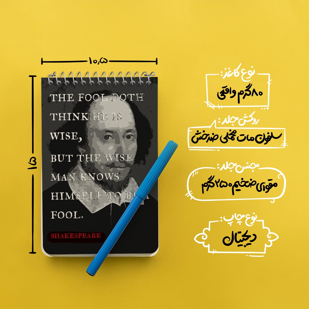 برند خندالو در زمینه تولید انواع دفاتر فانتزی و تحصیلی فعالیت میکند که به دلیل جذابیت ظاهری و طرح های متنوع طرفداران زیادی دارد. دفتر یادداشت خندالو طرح شکسپیر (Shakespeare) محصولی مناسب برای همه عاشقان لوازم التحریر است و همچنین همه کسانی که بنا به موقعیت تحصیل یا شغلشان با دفتر و نوشت افزار زیاد سر و کار دارند. در تولید دفتر یادداشت خندالو طرح شکسپیر (Shakespeare) از نوع صحافی فنر مارپیچ استفاده شده که در این نوع صحافی برگهها به راحتی چرخیده و یا بیرون آورده می شوند. دفتر های خندالو دارای جلد انعطاف پذیر از جنس مقوای گلاسه 250 گرم با روکش سلفون مات مخملی است که به شما امکان میدهد از دفتر خود بدون اینکه نگرانی از شکستن یا خراب شدن جلد را داشته باشید استفاده کنید و همچنین در این دفاتر از کاغذ 80 گرم با کیفیت استفاده شده که باعث میشود هنگام نوشتن به خوبی جوهر قلم بر روی صفحه نشسته و از خط خوردگیها جلوگیری کند. دفتر یادداشت خندالو با جنس و دوام مناسب، برگه های کاملاً سفید و خطوط طوسی دقیق را داراست که انسان را به نوشتن منظم و زیبا ترغیب میکند. طراحی کاملاً مناسب این دفاتر، به همراه کیفیت بالا، از آن یک محصول مورد علاقه و قابل اعتماد برای همه مقاطع تحصیلی میسازد. دفتر یادداشت خندالو طرح شکسپیر (Shakespeare) انتخابی هوشمندانه و مناسب برای افرادی است که به دنبال دفتری با کیفیت و کاربرد عالی هستند. این دفتر، همراه خوبی برای شما در تمام مراحل تحصیل و کار خواهد بود و تجربهای لذتبخش از نوشتن و آموختن را به شما هدیه میدهد.