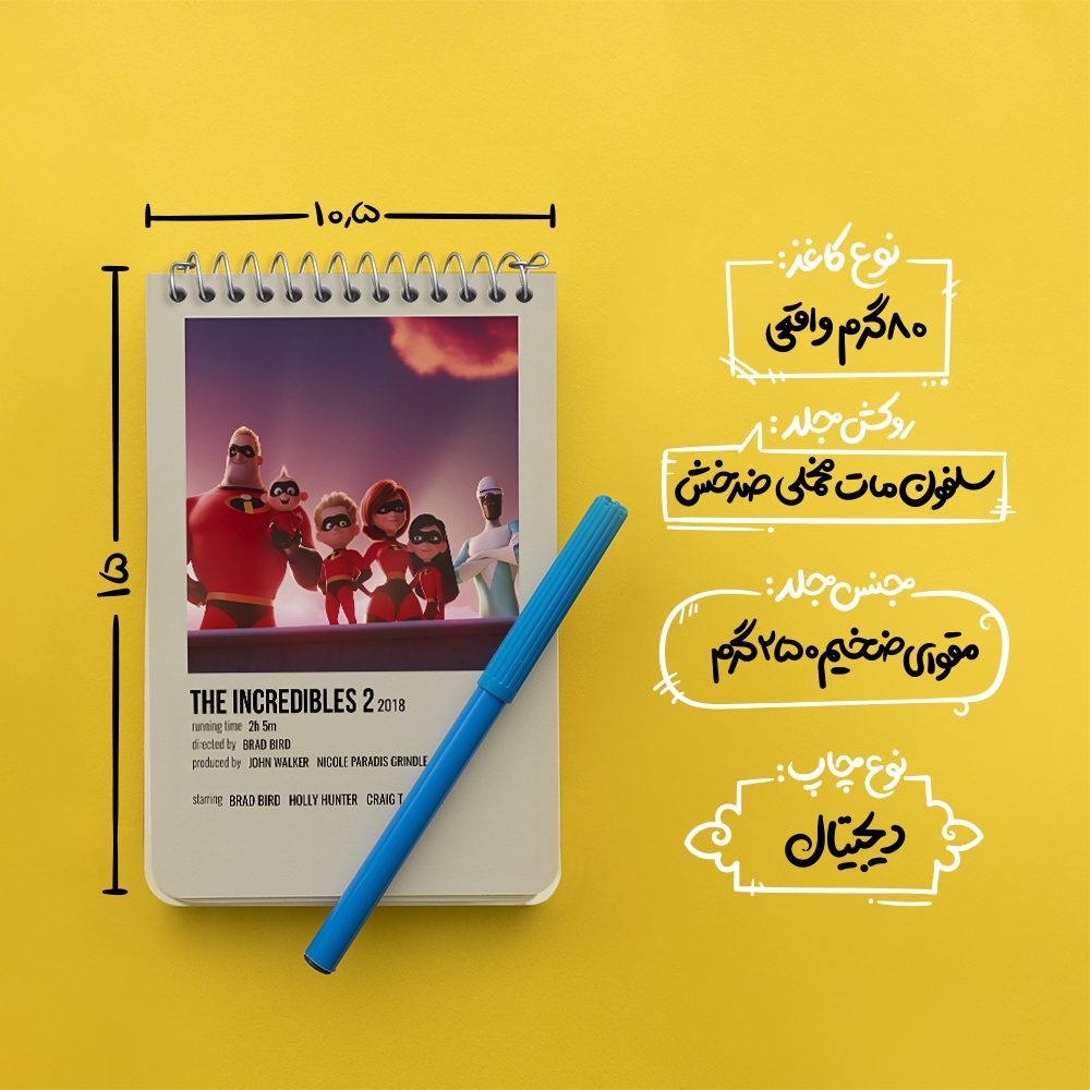 برند خندالو در زمینه تولید انواع دفاتر فانتزی و تحصیلی فعالیت میکند که به دلیل جذابیت ظاهری و طرح های متنوع طرفداران زیادی دارد. دفتر یادداشت خندالو طرح شگفت انگیزان (The Incredibles) محصولی مناسب برای همه عاشقان لوازم التحریر است و همچنین همه کسانی که بنا به موقعیت تحصیل یا شغلشان با دفتر و نوشت افزار زیاد سر و کار دارند. در تولید دفتر یادداشت خندالو طرح شگفت انگیزان (The Incredibles) از نوع صحافی فنر مارپیچ استفاده شده که در این نوع صحافی برگهها به راحتی چرخیده و یا بیرون آورده می شوند. دفتر های خندالو دارای جلد انعطاف پذیر از جنس مقوای گلاسه 250 گرم با روکش سلفون مات مخملی است که به شما امکان میدهد از دفتر خود بدون اینکه نگرانی از شکستن یا خراب شدن جلد را داشته باشید استفاده کنید و همچنین در این دفاتر از کاغذ 80 گرم با کیفیت استفاده شده که باعث میشود هنگام نوشتن به خوبی جوهر قلم بر روی صفحه نشسته و از خط خوردگیها جلوگیری کند. دفتر یادداشت خندالو با جنس و دوام مناسب، برگه های کاملاً سفید و خطوط طوسی دقیق را داراست که انسان را به نوشتن منظم و زیبا ترغیب میکند. طراحی کاملاً مناسب این دفاتر، به همراه کیفیت بالا، از آن یک محصول مورد علاقه و قابل اعتماد برای همه مقاطع تحصیلی میسازد. دفتر یادداشت خندالو طرح شگفت انگیزان (The Incredibles) انتخابی هوشمندانه و مناسب برای افرادی است که به دنبال دفتری با کیفیت و کاربرد عالی هستند. این دفتر، همراه خوبی برای شما در تمام مراحل تحصیل و کار خواهد بود و تجربهای لذتبخش از نوشتن و آموختن را به شما هدیه میدهد.