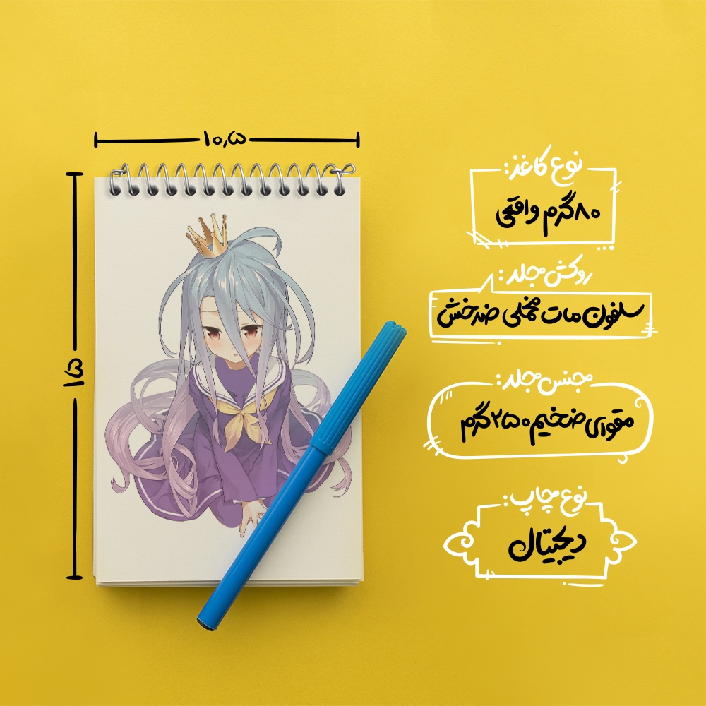 برند خندالو در زمینه تولید انواع دفاتر فانتزی و تحصیلی فعالیت میکند که به دلیل جذابیت ظاهری و طرح های متنوع طرفداران زیادی دارد. دفتر یادداشت خندالو طرح شیرو انیمه نو گیم نو لایف محصولی مناسب برای همه عاشقان لوازم التحریر است و همچنین همه کسانی که بنا به موقعیت تحصیل یا شغلشان با دفتر و نوشت افزار زیاد سر و کار دارند. در تولید دفتر یادداشت خندالو طرح شیرو انیمه نو گیم نو لایف از نوع صحافی فنر مارپیچ استفاده شده که در این نوع صحافی برگهها به راحتی چرخیده و یا بیرون آورده می شوند. دفتر های خندالو دارای جلد انعطاف پذیر از جنس مقوای گلاسه 250 گرم با روکش سلفون مات مخملی است که به شما امکان میدهد از دفتر خود بدون اینکه نگرانی از شکستن یا خراب شدن جلد را داشته باشید استفاده کنید و همچنین در این دفاتر از کاغذ 80 گرم با کیفیت استفاده شده که باعث میشود هنگام نوشتن به خوبی جوهر قلم بر روی صفحه نشسته و از خط خوردگیها جلوگیری کند. دفتر یادداشت خندالو با جنس و دوام مناسب، برگه های کاملاً سفید و خطوط طوسی دقیق را داراست که انسان را به نوشتن منظم و زیبا ترغیب میکند. طراحی کاملاً مناسب این دفاتر، به همراه کیفیت بالا، از آن یک محصول مورد علاقه و قابل اعتماد برای همه مقاطع تحصیلی میسازد. دفتر یادداشت خندالو طرح شیرو انیمه نو گیم نو لایف انتخابی هوشمندانه و مناسب برای افرادی است که به دنبال دفتری با کیفیت و کاربرد عالی هستند. این دفتر، همراه خوبی برای شما در تمام مراحل تحصیل و کار خواهد بود و تجربهای لذتبخش از نوشتن و آموختن را به شما هدیه میدهد.