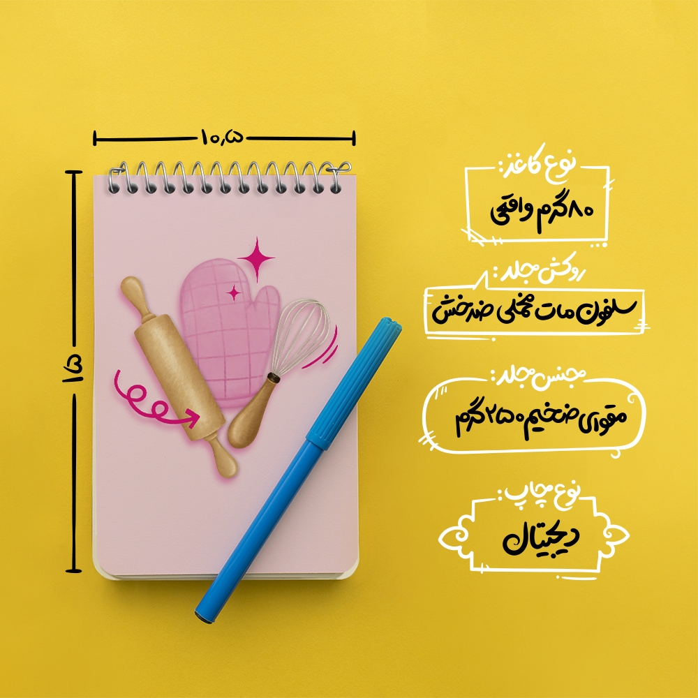 برند خندالو در زمینه تولید انواع دفاتر فانتزی و تحصیلی فعالیت میکند که به دلیل جذابیت ظاهری و طرح های متنوع طرفداران زیادی دارد. دفتر یادداشت خندالو طرح شیرینی پزی محصولی مناسب برای همه عاشقان لوازم التحریر است و همچنین همه کسانی که بنا به موقعیت تحصیل یا شغلشان با دفتر و نوشت افزار زیاد سر و کار دارند. در تولید دفتر یادداشت خندالو طرح شیرینی پزی از نوع صحافی فنر مارپیچ استفاده شده که در این نوع صحافی برگهها به راحتی چرخیده و یا بیرون آورده می شوند. دفتر های خندالو دارای جلد انعطاف پذیر از جنس مقوای گلاسه 250 گرم با روکش سلفون مات مخملی است که به شما امکان میدهد از دفتر خود بدون اینکه نگرانی از شکستن یا خراب شدن جلد را داشته باشید استفاده کنید و همچنین در این دفاتر از کاغذ 80 گرم با کیفیت استفاده شده که باعث میشود هنگام نوشتن به خوبی جوهر قلم بر روی صفحه نشسته و از خط خوردگیها جلوگیری کند. دفتر یادداشت خندالو با جنس و دوام مناسب، برگه های کاملاً سفید و خطوط طوسی دقیق را داراست که انسان را به نوشتن منظم و زیبا ترغیب میکند. طراحی کاملاً مناسب این دفاتر، به همراه کیفیت بالا، از آن یک محصول مورد علاقه و قابل اعتماد برای همه مقاطع تحصیلی میسازد. دفتر یادداشت خندالو طرح شیرینی پزی انتخابی هوشمندانه و مناسب برای افرادی است که به دنبال دفتری با کیفیت و کاربرد عالی هستند. این دفتر، همراه خوبی برای شما در تمام مراحل تحصیل و کار خواهد بود و تجربهای لذتبخش از نوشتن و آموختن را به شما هدیه میدهد.