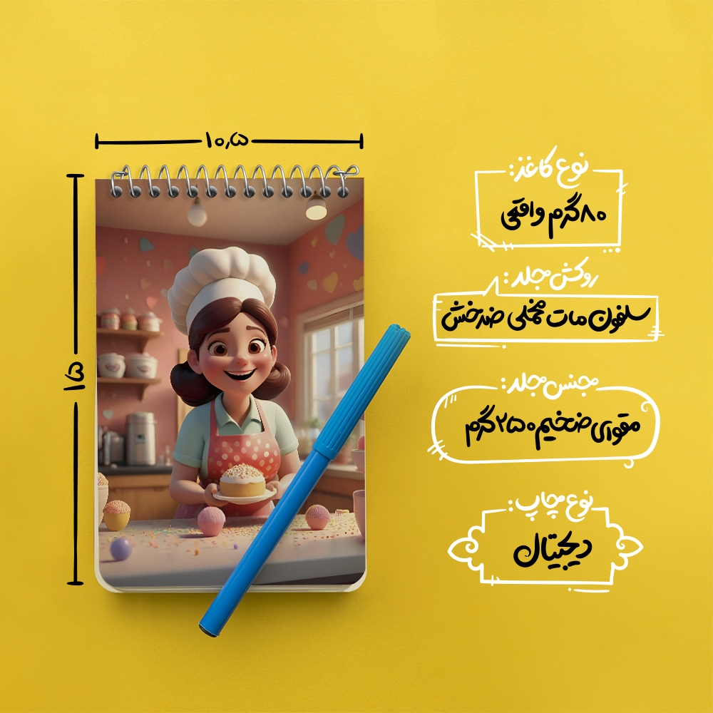 برند خندالو در زمینه تولید انواع دفاتر فانتزی و تحصیلی فعالیت میکند که به دلیل جذابیت ظاهری و طرح های متنوع طرفداران زیادی دارد. دفتر یادداشت خندالو طرح شیرینی پز محصولی مناسب برای همه عاشقان لوازم التحریر است و همچنین همه کسانی که بنا به موقعیت تحصیل یا شغلشان با دفتر و نوشت افزار زیاد سر و کار دارند. در تولید دفتر یادداشت خندالو طرح شیرینی پز از نوع صحافی فنر مارپیچ استفاده شده که در این نوع صحافی برگهها به راحتی چرخیده و یا بیرون آورده می شوند. دفتر های خندالو دارای جلد انعطاف پذیر از جنس مقوای گلاسه 250 گرم با روکش سلفون مات مخملی است که به شما امکان میدهد از دفتر خود بدون اینکه نگرانی از شکستن یا خراب شدن جلد را داشته باشید استفاده کنید و همچنین در این دفاتر از کاغذ 80 گرم با کیفیت استفاده شده که باعث میشود هنگام نوشتن به خوبی جوهر قلم بر روی صفحه نشسته و از خط خوردگیها جلوگیری کند. دفتر یادداشت خندالو با جنس و دوام مناسب، برگه های کاملاً سفید و خطوط طوسی دقیق را داراست که انسان را به نوشتن منظم و زیبا ترغیب میکند. طراحی کاملاً مناسب این دفاتر، به همراه کیفیت بالا، از آن یک محصول مورد علاقه و قابل اعتماد برای همه مقاطع تحصیلی میسازد. دفتر یادداشت خندالو طرح شیرینی پز انتخابی هوشمندانه و مناسب برای افرادی است که به دنبال دفتری با کیفیت و کاربرد عالی هستند. این دفتر، همراه خوبی برای شما در تمام مراحل تحصیل و کار خواهد بود و تجربهای لذتبخش از نوشتن و آموختن را به شما هدیه میدهد.