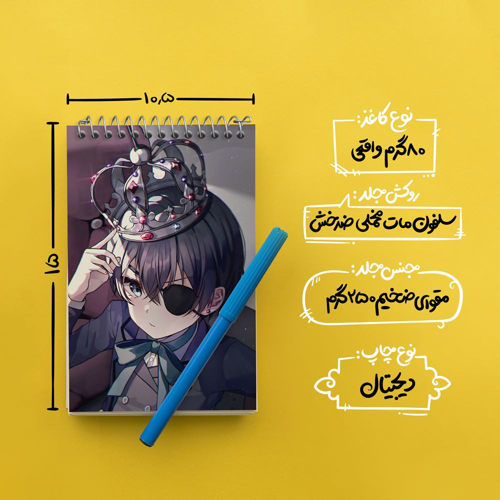 برند خندالو در زمینه تولید انواع دفاتر فانتزی و تحصیلی فعالیت میکند که به دلیل جذابیت ظاهری و طرح های متنوع طرفداران زیادی دارد. دفتر یادداشت خندالو طرح شیل انیمه خادم سیاه Black Butler محصولی مناسب برای همه عاشقان لوازم التحریر است و همچنین همه کسانی که بنا به موقعیت تحصیل یا شغلشان با دفتر و نوشت افزار زیاد سر و کار دارند. در تولید دفتر یادداشت خندالو طرح شیل انیمه خادم سیاه Black Butler از نوع صحافی فنر مارپیچ استفاده شده که در این نوع صحافی برگهها به راحتی چرخیده و یا بیرون آورده می شوند. دفتر های خندالو دارای جلد انعطاف پذیر از جنس مقوای گلاسه 250 گرم با روکش سلفون مات مخملی است که به شما امکان میدهد از دفتر خود بدون اینکه نگرانی از شکستن یا خراب شدن جلد را داشته باشید استفاده کنید و همچنین در این دفاتر از کاغذ 80 گرم با کیفیت استفاده شده که باعث میشود هنگام نوشتن به خوبی جوهر قلم بر روی صفحه نشسته و از خط خوردگیها جلوگیری کند. دفتر یادداشت خندالو با جنس و دوام مناسب، برگه های کاملاً سفید و خطوط طوسی دقیق را داراست که انسان را به نوشتن منظم و زیبا ترغیب میکند. طراحی کاملاً مناسب این دفاتر، به همراه کیفیت بالا، از آن یک محصول مورد علاقه و قابل اعتماد برای همه مقاطع تحصیلی میسازد. دفتر یادداشت خندالو طرح شیل انیمه خادم سیاه Black Butler انتخابی هوشمندانه و مناسب برای افرادی است که به دنبال دفتری با کیفیت و کاربرد عالی هستند. این دفتر، همراه خوبی برای شما در تمام مراحل تحصیل و کار خواهد بود و تجربهای لذتبخش از نوشتن و آموختن را به شما هدیه میدهد.