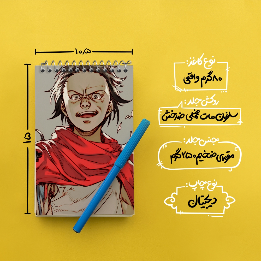 برند خندالو در زمینه تولید انواع دفاتر فانتزی و تحصیلی فعالیت میکند که به دلیل جذابیت ظاهری و طرح های متنوع طرفداران زیادی دارد. دفتر یادداشت خندالو طرح شیما انیمه آکیرا محصولی مناسب برای همه عاشقان لوازم التحریر است و همچنین همه کسانی که بنا به موقعیت تحصیل یا شغلشان با دفتر و نوشت افزار زیاد سر و کار دارند. در تولید دفتر یادداشت خندالو طرح شیما انیمه آکیرا از نوع صحافی فنر مارپیچ استفاده شده که در این نوع صحافی برگهها به راحتی چرخیده و یا بیرون آورده می شوند. دفتر های خندالو دارای جلد انعطاف پذیر از جنس مقوای گلاسه 250 گرم با روکش سلفون مات مخملی است که به شما امکان میدهد از دفتر خود بدون اینکه نگرانی از شکستن یا خراب شدن جلد را داشته باشید استفاده کنید و همچنین در این دفاتر از کاغذ 80 گرم با کیفیت استفاده شده که باعث میشود هنگام نوشتن به خوبی جوهر قلم بر روی صفحه نشسته و از خط خوردگیها جلوگیری کند. دفتر یادداشت خندالو با جنس و دوام مناسب، برگه های کاملاً سفید و خطوط طوسی دقیق را داراست که انسان را به نوشتن منظم و زیبا ترغیب میکند. طراحی کاملاً مناسب این دفاتر، به همراه کیفیت بالا، از آن یک محصول مورد علاقه و قابل اعتماد برای همه مقاطع تحصیلی میسازد. دفتر یادداشت خندالو طرح شیما انیمه آکیرا انتخابی هوشمندانه و مناسب برای افرادی است که به دنبال دفتری با کیفیت و کاربرد عالی هستند. این دفتر، همراه خوبی برای شما در تمام مراحل تحصیل و کار خواهد بود و تجربهای لذتبخش از نوشتن و آموختن را به شما هدیه میدهد.