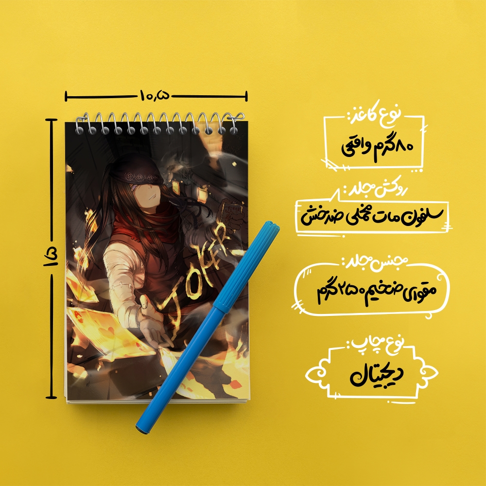 برند خندالو در زمینه تولید انواع دفاتر فانتزی و تحصیلی فعالیت میکند که به دلیل جذابیت ظاهری و طرح های متنوع طرفداران زیادی دارد. دفتر یادداشت خندالو طرح شینیگامی انیمه نیروی آتش محصولی مناسب برای همه عاشقان لوازم التحریر است و همچنین همه کسانی که بنا به موقعیت تحصیل یا شغلشان با دفتر و نوشت افزار زیاد سر و کار دارند. در تولید دفتر یادداشت خندالو طرح شینیگامی انیمه نیروی آتش از نوع صحافی فنر مارپیچ استفاده شده که در این نوع صحافی برگهها به راحتی چرخیده و یا بیرون آورده می شوند. دفتر های خندالو دارای جلد انعطاف پذیر از جنس مقوای گلاسه 250 گرم با روکش سلفون مات مخملی است که به شما امکان میدهد از دفتر خود بدون اینکه نگرانی از شکستن یا خراب شدن جلد را داشته باشید استفاده کنید و همچنین در این دفاتر از کاغذ 80 گرم با کیفیت استفاده شده که باعث میشود هنگام نوشتن به خوبی جوهر قلم بر روی صفحه نشسته و از خط خوردگیها جلوگیری کند. دفتر یادداشت خندالو با جنس و دوام مناسب، برگه های کاملاً سفید و خطوط طوسی دقیق را داراست که انسان را به نوشتن منظم و زیبا ترغیب میکند. طراحی کاملاً مناسب این دفاتر، به همراه کیفیت بالا، از آن یک محصول مورد علاقه و قابل اعتماد برای همه مقاطع تحصیلی میسازد. دفتر یادداشت خندالو طرح شینیگامی انیمه نیروی آتش انتخابی هوشمندانه و مناسب برای افرادی است که به دنبال دفتری با کیفیت و کاربرد عالی هستند. این دفتر، همراه خوبی برای شما در تمام مراحل تحصیل و کار خواهد بود و تجربهای لذتبخش از نوشتن و آموختن را به شما هدیه میدهد.