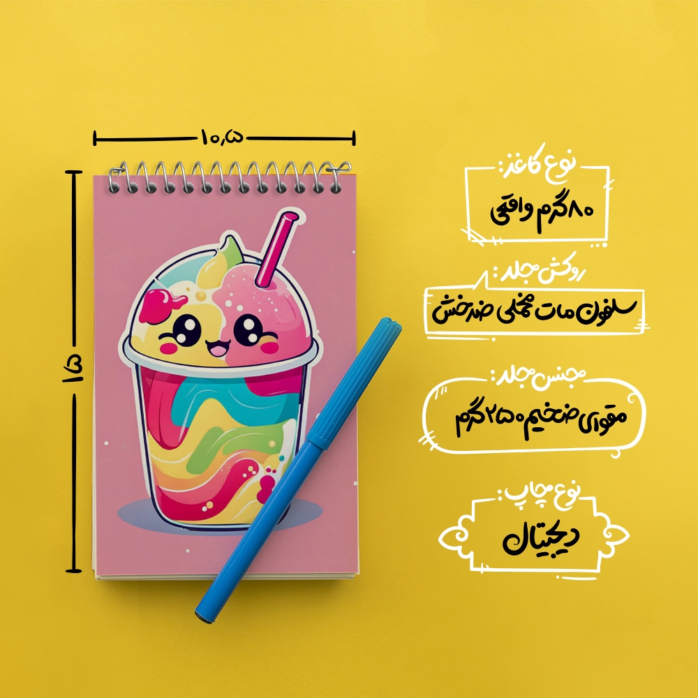 برند خندالو در زمینه تولید انواع دفاتر فانتزی و تحصیلی فعالیت میکند که به دلیل جذابیت ظاهری و طرح های متنوع طرفداران زیادی دارد. دفتر یادداشت خندالو طرح شیک کیوت محصولی مناسب برای همه عاشقان لوازم التحریر است و همچنین همه کسانی که بنا به موقعیت تحصیل یا شغلشان با دفتر و نوشت افزار زیاد سر و کار دارند. در تولید دفتر یادداشت خندالو طرح شیک کیوت از نوع صحافی فنر مارپیچ استفاده شده که در این نوع صحافی برگهها به راحتی چرخیده و یا بیرون آورده می شوند. دفتر های خندالو دارای جلد انعطاف پذیر از جنس مقوای گلاسه 250 گرم با روکش سلفون مات مخملی است که به شما امکان میدهد از دفتر خود بدون اینکه نگرانی از شکستن یا خراب شدن جلد را داشته باشید استفاده کنید و همچنین در این دفاتر از کاغذ 80 گرم با کیفیت استفاده شده که باعث میشود هنگام نوشتن به خوبی جوهر قلم بر روی صفحه نشسته و از خط خوردگیها جلوگیری کند. دفتر یادداشت خندالو با جنس و دوام مناسب، برگه های کاملاً سفید و خطوط طوسی دقیق را داراست که انسان را به نوشتن منظم و زیبا ترغیب میکند. طراحی کاملاً مناسب این دفاتر، به همراه کیفیت بالا، از آن یک محصول مورد علاقه و قابل اعتماد برای همه مقاطع تحصیلی میسازد. دفتر یادداشت خندالو طرح شیک کیوت انتخابی هوشمندانه و مناسب برای افرادی است که به دنبال دفتری با کیفیت و کاربرد عالی هستند. این دفتر، همراه خوبی برای شما در تمام مراحل تحصیل و کار خواهد بود و تجربهای لذتبخش از نوشتن و آموختن را به شما هدیه میدهد.