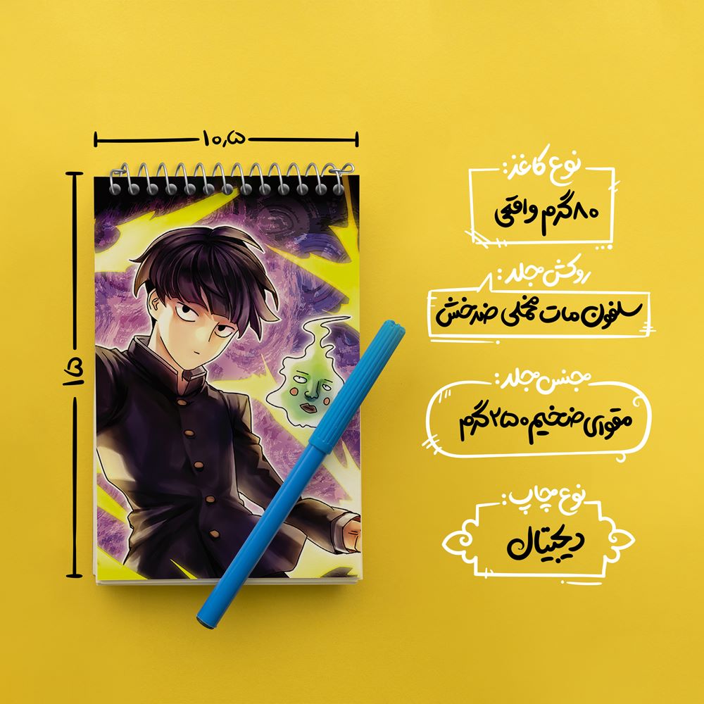 برند خندالو در زمینه تولید انواع دفاتر فانتزی و تحصیلی فعالیت میکند که به دلیل جذابیت ظاهری و طرح های متنوع طرفداران زیادی دارد. دفتر یادداشت خندالو طرح شییکو انیمه موب سایکو Mob Psycho 100 محصولی مناسب برای همه عاشقان لوازم التحریر است و همچنین همه کسانی که بنا به موقعیت تحصیل یا شغلشان با دفتر و نوشت افزار زیاد سر و کار دارند. در تولید دفتر یادداشت خندالو طرح شییکو انیمه موب سایکو Mob Psycho 100 از نوع صحافی فنر مارپیچ استفاده شده که در این نوع صحافی برگهها به راحتی چرخیده و یا بیرون آورده می شوند. دفتر های خندالو دارای جلد انعطاف پذیر از جنس مقوای گلاسه 250 گرم با روکش سلفون مات مخملی است که به شما امکان میدهد از دفتر خود بدون اینکه نگرانی از شکستن یا خراب شدن جلد را داشته باشید استفاده کنید و همچنین در این دفاتر از کاغذ 80 گرم با کیفیت استفاده شده که باعث میشود هنگام نوشتن به خوبی جوهر قلم بر روی صفحه نشسته و از خط خوردگیها جلوگیری کند. دفتر یادداشت خندالو با جنس و دوام مناسب، برگه های کاملاً سفید و خطوط طوسی دقیق را داراست که انسان را به نوشتن منظم و زیبا ترغیب میکند. طراحی کاملاً مناسب این دفاتر، به همراه کیفیت بالا، از آن یک محصول مورد علاقه و قابل اعتماد برای همه مقاطع تحصیلی میسازد. دفتر یادداشت خندالو طرح شییکو انیمه موب سایکو Mob Psycho 100 انتخابی هوشمندانه و مناسب برای افرادی است که به دنبال دفتری با کیفیت و کاربرد عالی هستند. این دفتر، همراه خوبی برای شما در تمام مراحل تحصیل و کار خواهد بود و تجربهای لذتبخش از نوشتن و آموختن را به شما هدیه میدهد.