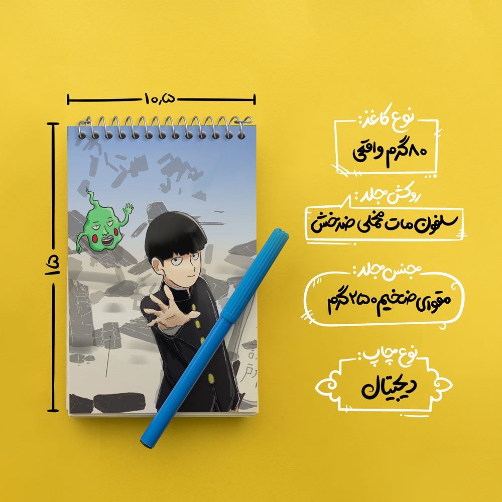 برند خندالو در زمینه تولید انواع دفاتر فانتزی و تحصیلی فعالیت میکند که به دلیل جذابیت ظاهری و طرح های متنوع طرفداران زیادی دارد. دفتر یادداشت خندالو طرح شییکو انیمه موب سایکو Mob Psycho 100 محصولی مناسب برای همه عاشقان لوازم التحریر است و همچنین همه کسانی که بنا به موقعیت تحصیل یا شغلشان با دفتر و نوشت افزار زیاد سر و کار دارند. در تولید دفتر یادداشت خندالو طرح شییکو انیمه موب سایکو Mob Psycho 100 از نوع صحافی فنر مارپیچ استفاده شده که در این نوع صحافی برگهها به راحتی چرخیده و یا بیرون آورده می شوند. دفتر های خندالو دارای جلد انعطاف پذیر از جنس مقوای گلاسه 250 گرم با روکش سلفون مات مخملی است که به شما امکان میدهد از دفتر خود بدون اینکه نگرانی از شکستن یا خراب شدن جلد را داشته باشید استفاده کنید و همچنین در این دفاتر از کاغذ 80 گرم با کیفیت استفاده شده که باعث میشود هنگام نوشتن به خوبی جوهر قلم بر روی صفحه نشسته و از خط خوردگیها جلوگیری کند. دفتر یادداشت خندالو با جنس و دوام مناسب، برگه های کاملاً سفید و خطوط طوسی دقیق را داراست که انسان را به نوشتن منظم و زیبا ترغیب میکند. طراحی کاملاً مناسب این دفاتر، به همراه کیفیت بالا، از آن یک محصول مورد علاقه و قابل اعتماد برای همه مقاطع تحصیلی میسازد. دفتر یادداشت خندالو طرح شییکو انیمه موب سایکو Mob Psycho 100 انتخابی هوشمندانه و مناسب برای افرادی است که به دنبال دفتری با کیفیت و کاربرد عالی هستند. این دفتر، همراه خوبی برای شما در تمام مراحل تحصیل و کار خواهد بود و تجربهای لذتبخش از نوشتن و آموختن را به شما هدیه میدهد.