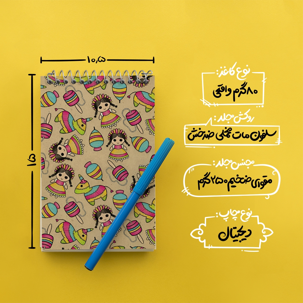 برند خندالو در زمینه تولید انواع دفاتر فانتزی و تحصیلی فعالیت میکند که به دلیل جذابیت ظاهری و طرح های متنوع طرفداران زیادی دارد. دفتر یادداشت خندالو طرح عروسک دخترانه محصولی مناسب برای همه عاشقان لوازم التحریر است و همچنین همه کسانی که بنا به موقعیت تحصیل یا شغلشان با دفتر و نوشت افزار زیاد سر و کار دارند. در تولید دفتر یادداشت خندالو طرح عروسک دخترانه از نوع صحافی فنر مارپیچ استفاده شده که در این نوع صحافی برگهها به راحتی چرخیده و یا بیرون آورده می شوند. دفتر های خندالو دارای جلد انعطاف پذیر از جنس مقوای گلاسه 250 گرم با روکش سلفون مات مخملی است که به شما امکان میدهد از دفتر خود بدون اینکه نگرانی از شکستن یا خراب شدن جلد را داشته باشید استفاده کنید و همچنین در این دفاتر از کاغذ 80 گرم با کیفیت استفاده شده که باعث میشود هنگام نوشتن به خوبی جوهر قلم بر روی صفحه نشسته و از خط خوردگیها جلوگیری کند. دفتر یادداشت خندالو با جنس و دوام مناسب، برگه های کاملاً سفید و خطوط طوسی دقیق را داراست که انسان را به نوشتن منظم و زیبا ترغیب میکند. طراحی کاملاً مناسب این دفاتر، به همراه کیفیت بالا، از آن یک محصول مورد علاقه و قابل اعتماد برای همه مقاطع تحصیلی میسازد. دفتر یادداشت خندالو طرح عروسک دخترانه انتخابی هوشمندانه و مناسب برای افرادی است که به دنبال دفتری با کیفیت و کاربرد عالی هستند. این دفتر، همراه خوبی برای شما در تمام مراحل تحصیل و کار خواهد بود و تجربهای لذتبخش از نوشتن و آموختن را به شما هدیه میدهد.