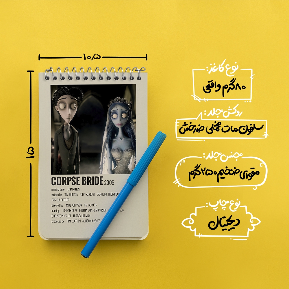 برند خندالو در زمینه تولید انواع دفاتر فانتزی و تحصیلی فعالیت میکند که به دلیل جذابیت ظاهری و طرح های متنوع طرفداران زیادی دارد. دفتر یادداشت خندالو طرح عروس مردگان (Corpse Bride) محصولی مناسب برای همه عاشقان لوازم التحریر است و همچنین همه کسانی که بنا به موقعیت تحصیل یا شغلشان با دفتر و نوشت افزار زیاد سر و کار دارند. در تولید دفتر یادداشت خندالو طرح عروس مردگان (Corpse Bride) از نوع صحافی فنر مارپیچ استفاده شده که در این نوع صحافی برگهها به راحتی چرخیده و یا بیرون آورده می شوند. دفتر های خندالو دارای جلد انعطاف پذیر از جنس مقوای گلاسه 250 گرم با روکش سلفون مات مخملی است که به شما امکان میدهد از دفتر خود بدون اینکه نگرانی از شکستن یا خراب شدن جلد را داشته باشید استفاده کنید و همچنین در این دفاتر از کاغذ 80 گرم با کیفیت استفاده شده که باعث میشود هنگام نوشتن به خوبی جوهر قلم بر روی صفحه نشسته و از خط خوردگیها جلوگیری کند. دفتر یادداشت خندالو با جنس و دوام مناسب، برگه های کاملاً سفید و خطوط طوسی دقیق را داراست که انسان را به نوشتن منظم و زیبا ترغیب میکند. طراحی کاملاً مناسب این دفاتر، به همراه کیفیت بالا، از آن یک محصول مورد علاقه و قابل اعتماد برای همه مقاطع تحصیلی میسازد. دفتر یادداشت خندالو طرح عروس مردگان (Corpse Bride) انتخابی هوشمندانه و مناسب برای افرادی است که به دنبال دفتری با کیفیت و کاربرد عالی هستند. این دفتر، همراه خوبی برای شما در تمام مراحل تحصیل و کار خواهد بود و تجربهای لذتبخش از نوشتن و آموختن را به شما هدیه میدهد.