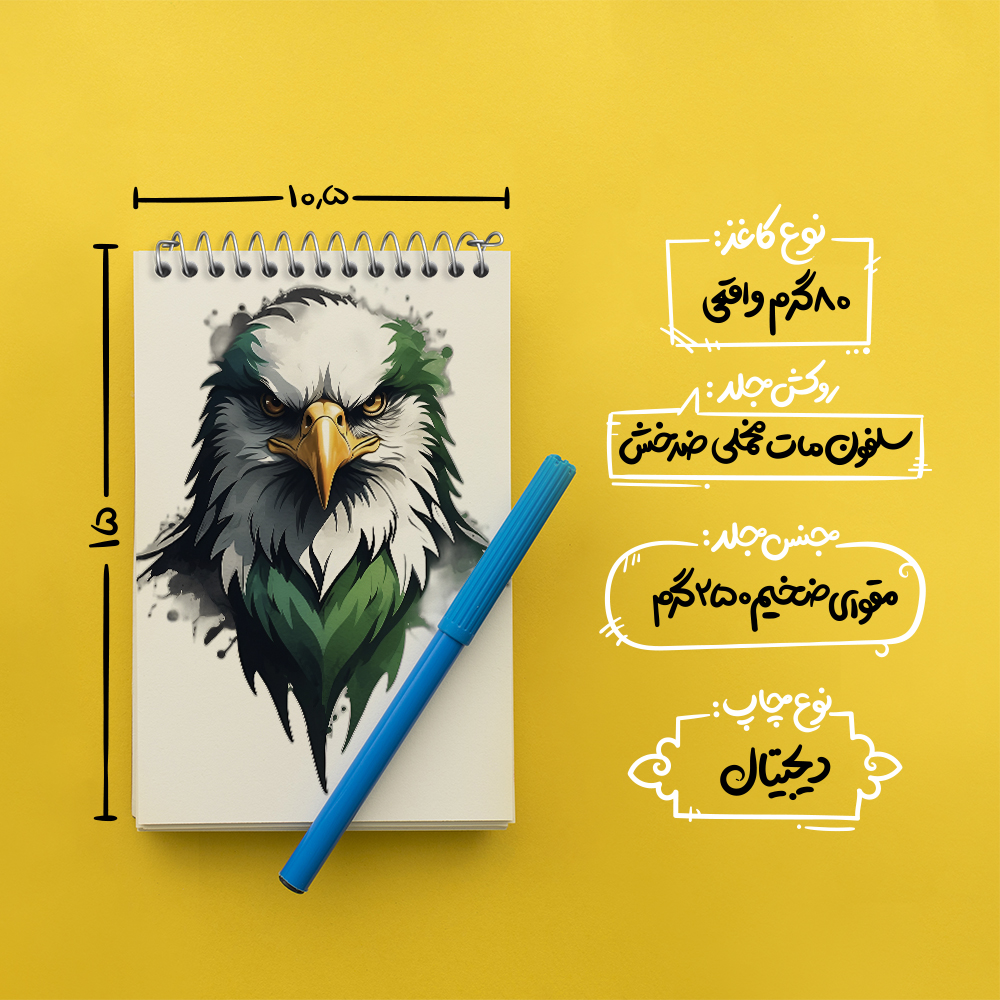 برند خندالو در زمینه تولید انواع دفاتر فانتزی و تحصیلی فعالیت میکند که به دلیل جذابیت ظاهری و طرح های متنوع طرفداران زیادی دارد. دفتر یادداشت خندالو طرح عقاب محصولی مناسب برای همه عاشقان لوازم التحریر است و همچنین همه کسانی که بنا به موقعیت تحصیل یا شغلشان با دفتر و نوشت افزار زیاد سر و کار دارند. در تولید دفتر یادداشت خندالو طرح عقاب از نوع صحافی فنر مارپیچ استفاده شده که در این نوع صحافی برگهها به راحتی چرخیده و یا بیرون آورده می شوند. دفتر های خندالو دارای جلد انعطاف پذیر از جنس مقوای گلاسه 250 گرم با روکش سلفون مات مخملی است که به شما امکان میدهد از دفتر خود بدون اینکه نگرانی از شکستن یا خراب شدن جلد را داشته باشید استفاده کنید و همچنین در این دفاتر از کاغذ 80 گرم با کیفیت استفاده شده که باعث میشود هنگام نوشتن به خوبی جوهر قلم بر روی صفحه نشسته و از خط خوردگیها جلوگیری کند. دفتر یادداشت خندالو با جنس و دوام مناسب، برگه های کاملاً سفید و خطوط طوسی دقیق را داراست که انسان را به نوشتن منظم و زیبا ترغیب میکند. طراحی کاملاً مناسب این دفاتر، به همراه کیفیت بالا، از آن یک محصول مورد علاقه و قابل اعتماد برای همه مقاطع تحصیلی میسازد. دفتر یادداشت خندالو طرح عقاب انتخابی هوشمندانه و مناسب برای افرادی است که به دنبال دفتری با کیفیت و کاربرد عالی هستند. این دفتر، همراه خوبی برای شما در تمام مراحل تحصیل و کار خواهد بود و تجربهای لذتبخش از نوشتن و آموختن را به شما هدیه میدهد.
