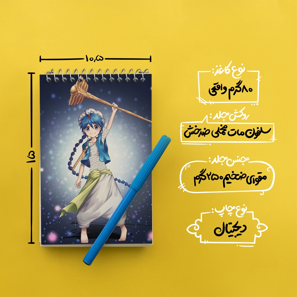 برند خندالو در زمینه تولید انواع دفاتر فانتزی و تحصیلی فعالیت میکند که به دلیل جذابیت ظاهری و طرح های متنوع طرفداران زیادی دارد. دفتر یادداشت خندالو طرح علائدین انیمه ماگی هزارتوی سحر و جادو محصولی مناسب برای همه عاشقان لوازم التحریر است و همچنین همه کسانی که بنا به موقعیت تحصیل یا شغلشان با دفتر و نوشت افزار زیاد سر و کار دارند. در تولید دفتر یادداشت خندالو طرح علائدین انیمه ماگی هزارتوی سحر و جادو از نوع صحافی فنر مارپیچ استفاده شده که در این نوع صحافی برگهها به راحتی چرخیده و یا بیرون آورده می شوند. دفتر های خندالو دارای جلد انعطاف پذیر از جنس مقوای گلاسه 250 گرم با روکش سلفون مات مخملی است که به شما امکان میدهد از دفتر خود بدون اینکه نگرانی از شکستن یا خراب شدن جلد را داشته باشید استفاده کنید و همچنین در این دفاتر از کاغذ 80 گرم با کیفیت استفاده شده که باعث میشود هنگام نوشتن به خوبی جوهر قلم بر روی صفحه نشسته و از خط خوردگیها جلوگیری کند. دفتر یادداشت خندالو با جنس و دوام مناسب، برگه های کاملاً سفید و خطوط طوسی دقیق را داراست که انسان را به نوشتن منظم و زیبا ترغیب میکند. طراحی کاملاً مناسب این دفاتر، به همراه کیفیت بالا، از آن یک محصول مورد علاقه و قابل اعتماد برای همه مقاطع تحصیلی میسازد. دفتر یادداشت خندالو طرح علائدین انیمه ماگی هزارتوی سحر و جادو انتخابی هوشمندانه و مناسب برای افرادی است که به دنبال دفتری با کیفیت و کاربرد عالی هستند. این دفتر، همراه خوبی برای شما در تمام مراحل تحصیل و کار خواهد بود و تجربهای لذتبخش از نوشتن و آموختن را به شما هدیه میدهد.